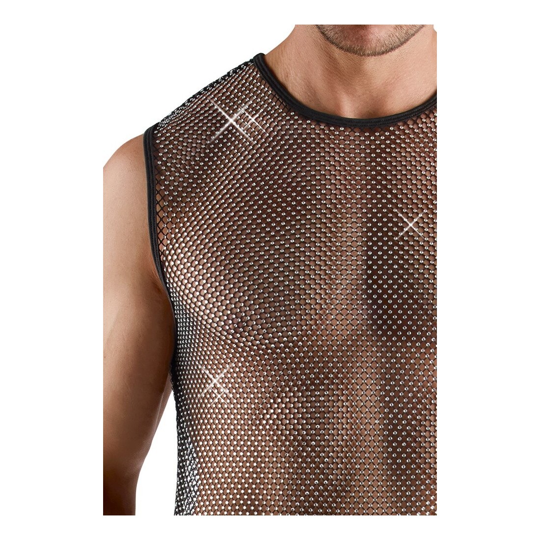Camicia a rete senza maniche trasparente con Strass scintillanti XL