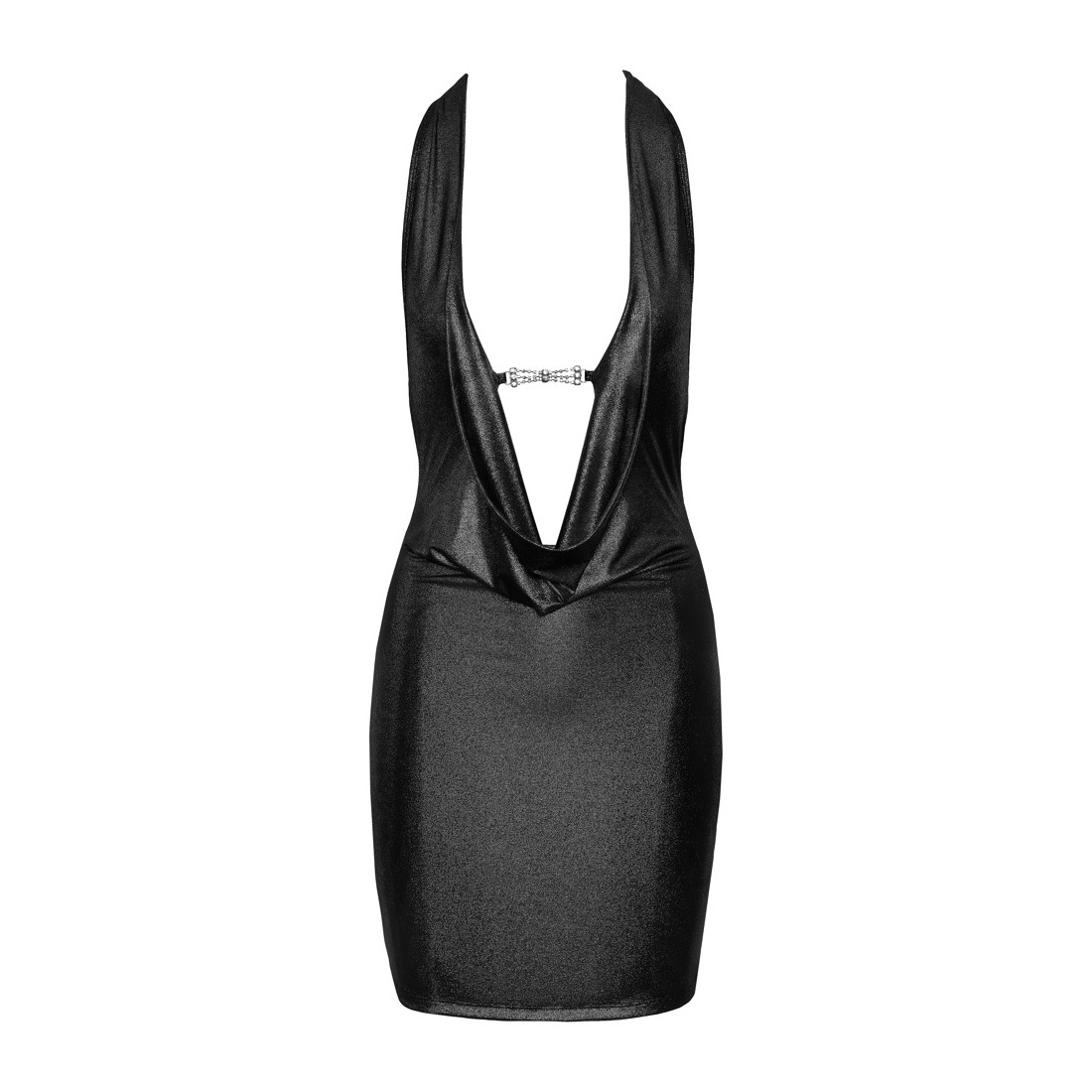 Abito corto di Cottelli PARTY in argento scintillante. Taglio aderente con profonda scollatura a cascata tenuta insieme solo da un fermaglio decorativo di strass. Con collo halter - eccitante senza schiena. Splendidamente elastico tutto intorno per una vestibilità aderente e un alto comfort di vestibilità.