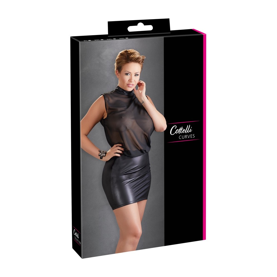 mini abito nero è a cuore aperto con top senza maniche in tessuto trasparente XXL