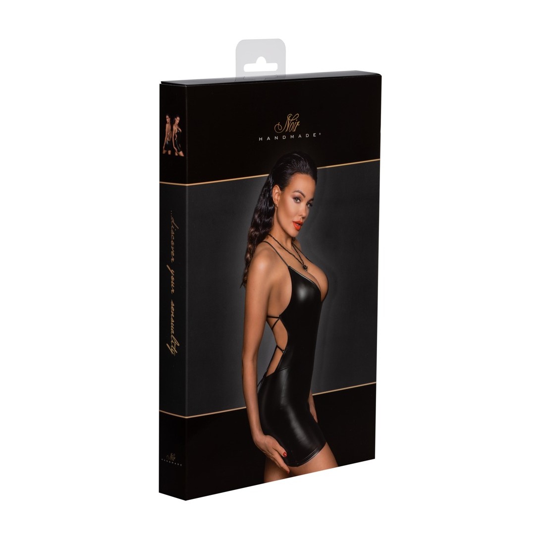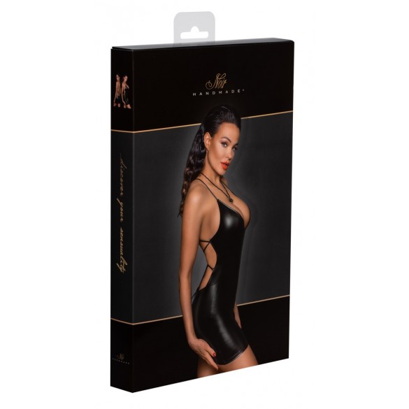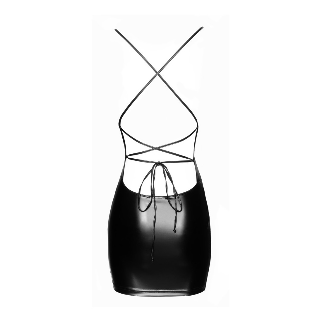 Abito extra corto di Noir con allacciatura sexy sul retro. Taglio aderente e succinto in un elegante e morbido look powerwet. Morbido ed elasticizzato su tutto il corpo per il massimo comfort. Profonda scollatura sul davanti, le spalline strette si incrociano sulla schiena.