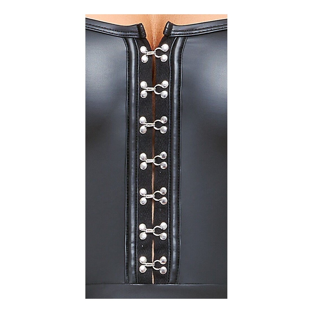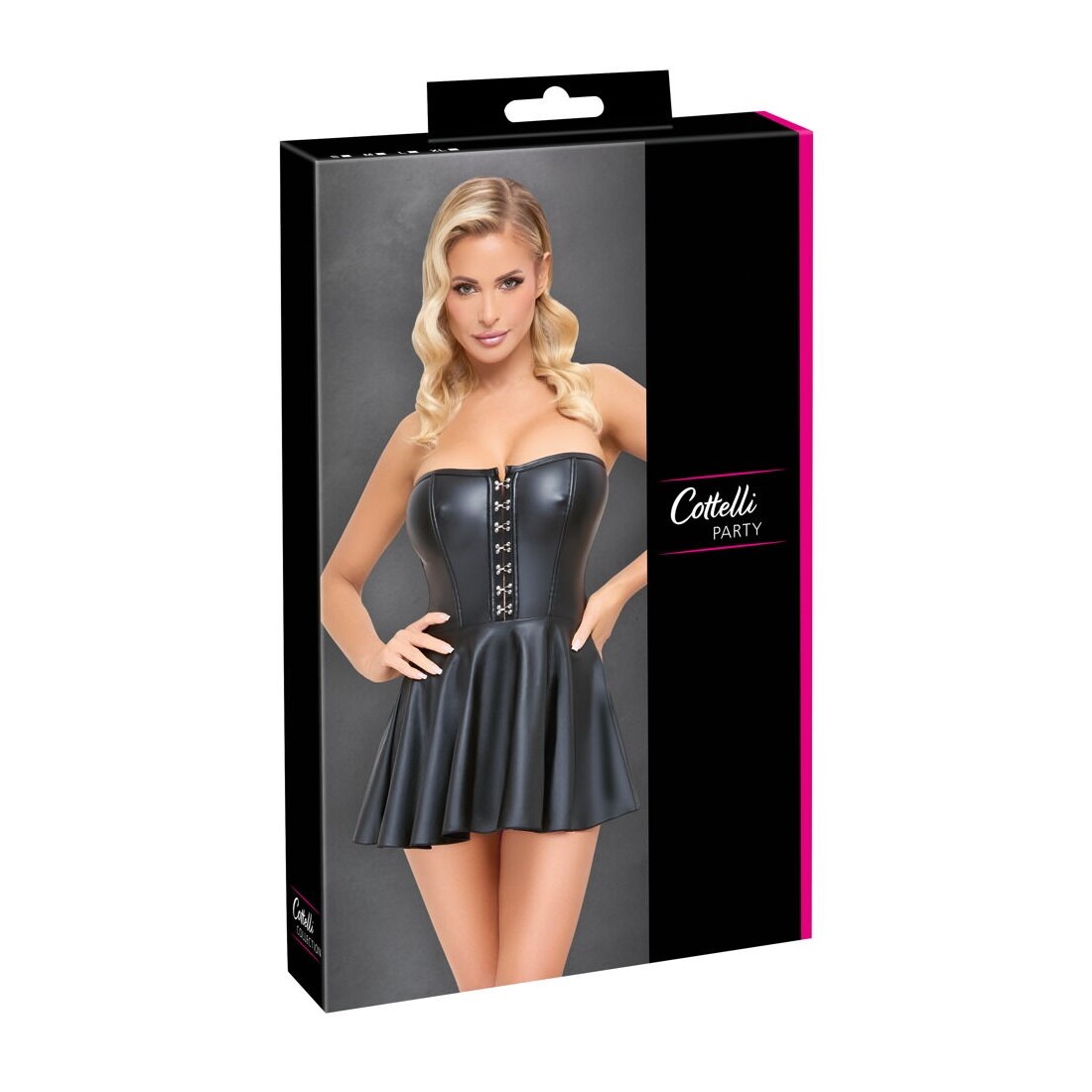 Mini abito a tubo di Cottelli PARTY in un sofisticato look nero opaco. Top aderente e lusinghiero, in stile corsetto senza spalline con stecche sagomate. Ganci e occhielli decorativi color argento sul davanti per l'apertura. Gonna ampia e svasata. Morbida e altamente elasticizzata per un elevato livello di comfort.
