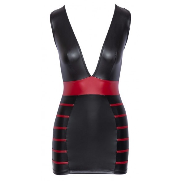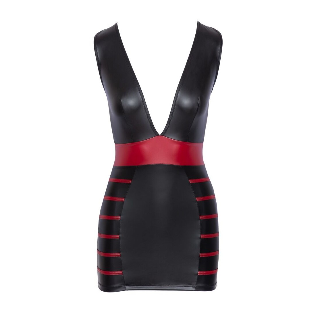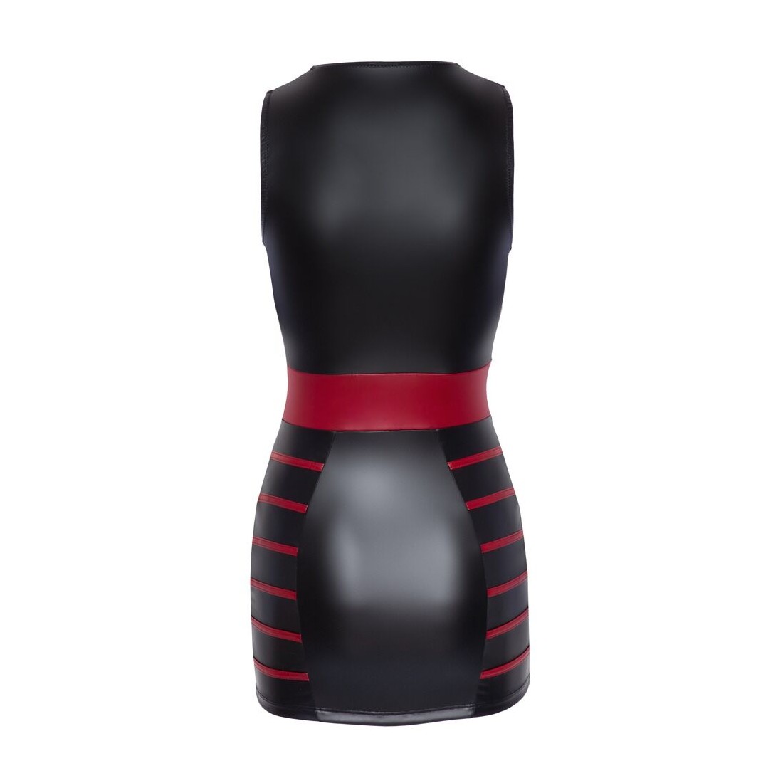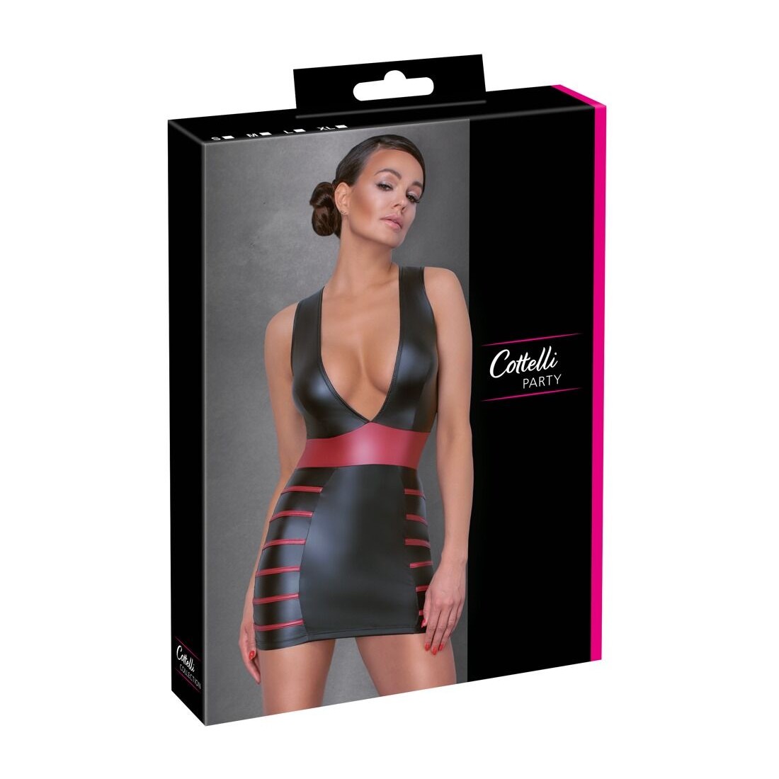Abito corto aderente di Cottelli PARTY in look nero opaco con strisce laterali rosse nella parte della gonna e inserto in vita in rosso per accentuare la silhouette e le curve. Taglio extra basso a V sul davanti. Morbido e altamente elastico per un elevato comfort di vestibilità.