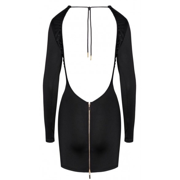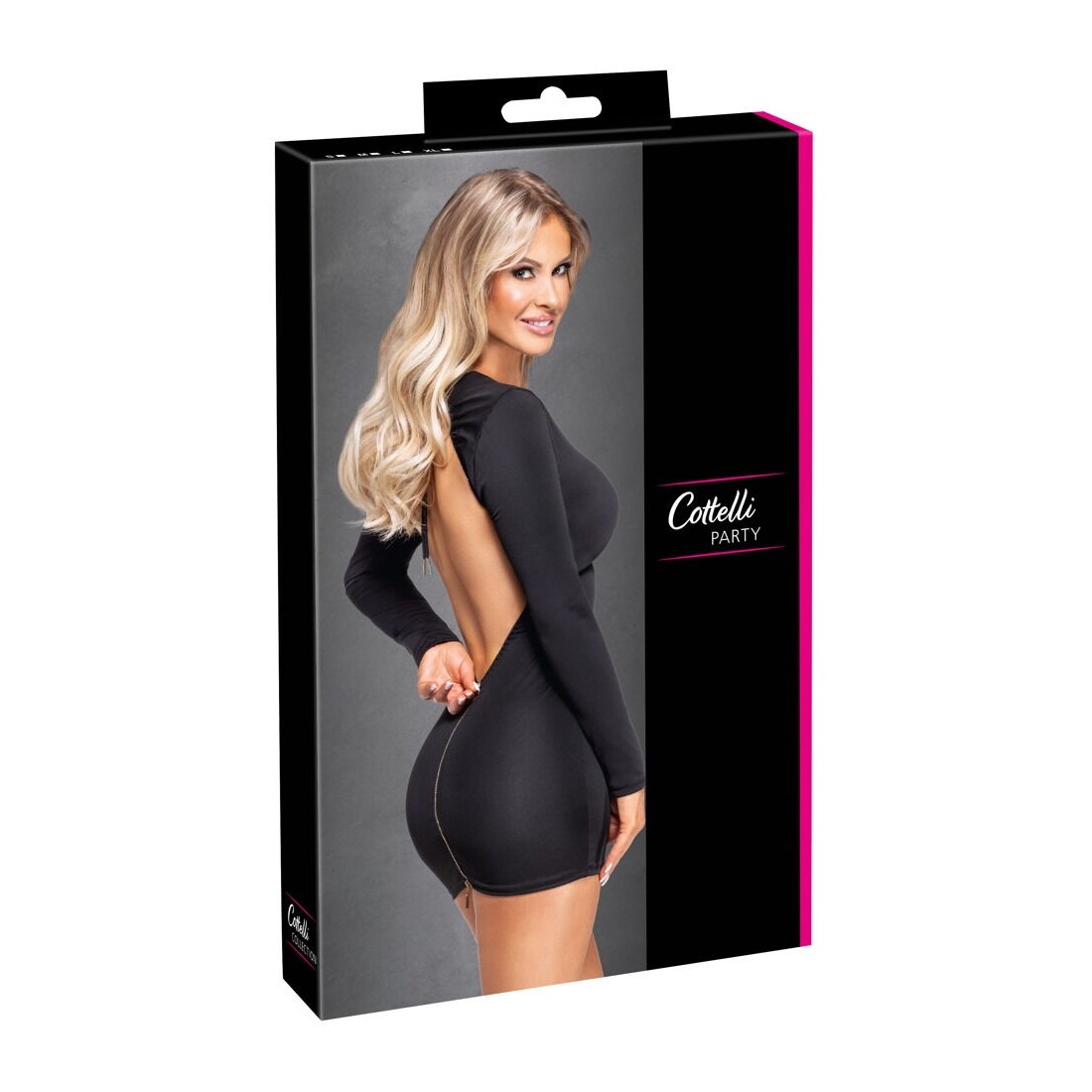 Mini abito nero di Cottelli PARTY dal taglio aderente con maniche lunghe. Scollatura mozzafiato sulla schiena con coulisse da annodare individualmente. Una cerniera a 2 vie color oro nella gonna sottostante. Il materiale finemente elasticizzato aderisce perfettamente e offre un comfort e una facilità di movimento ottimali.