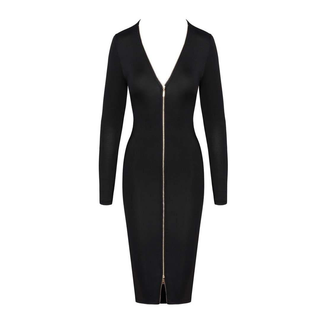 Abito a maniche lunghe aderente con zip a 2 vie color oro sul davanti M