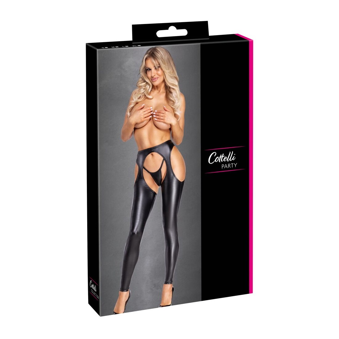 I chaps di Cottelli PARTY, aderenti e confortevoli, hanno una gamba lunga e stretta come un paio di leggings. Non solo completamente aperti all'inguine e privi di fondo, ma anche con ampi tagli ai lati. In un look nero opaco di tendenza, con una fascia elastica in vita - morbida ed elastica per un elevato livello di comfort. Il perizoma semplice e bello in look opaco è incluso.