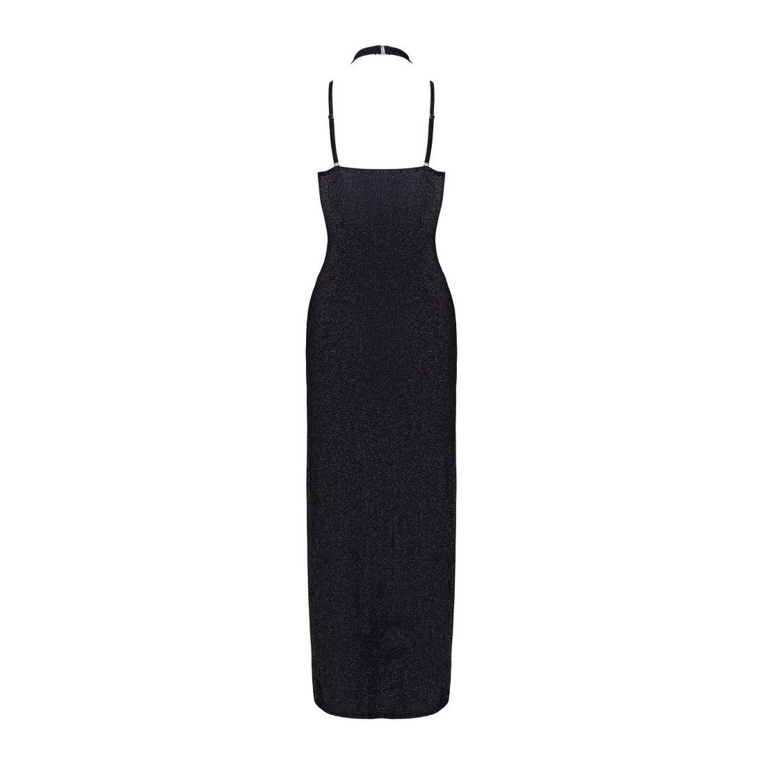 Abito lungo nero con glitter argento con collo alto - senza schienale M