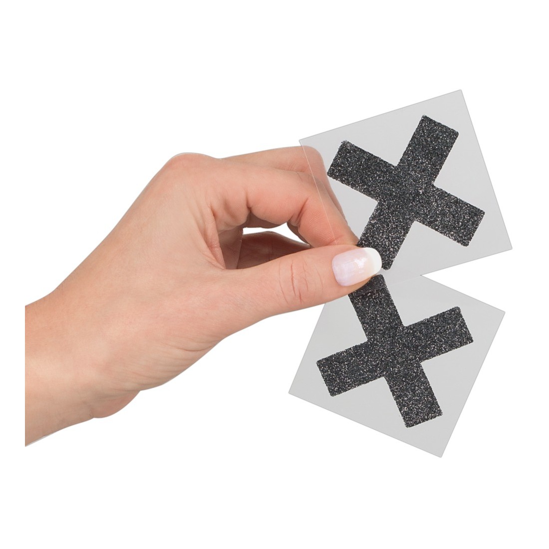 Croci nere scintillanti per capezzoli da attaccare. Sul retro con strisce adesive.