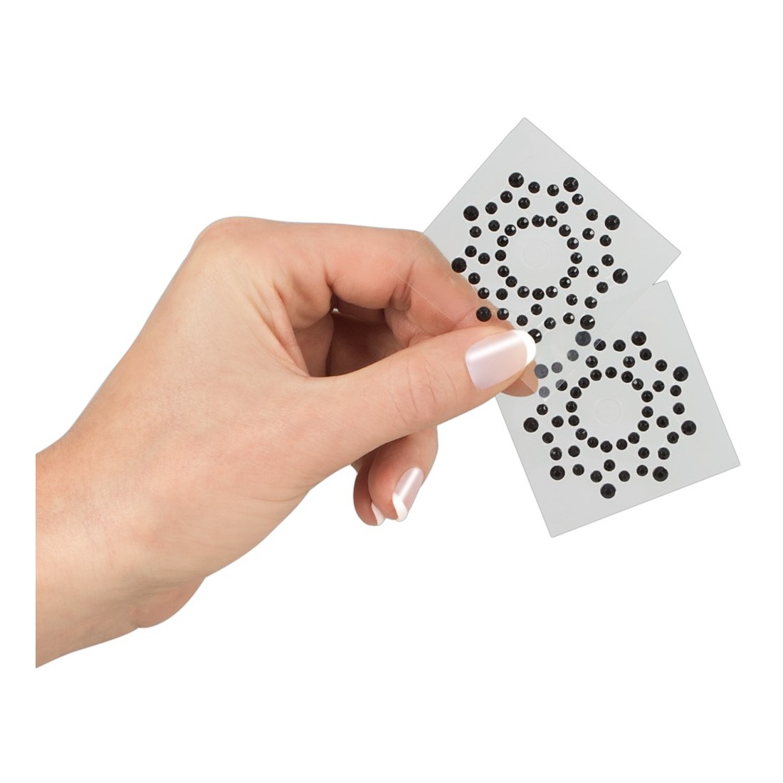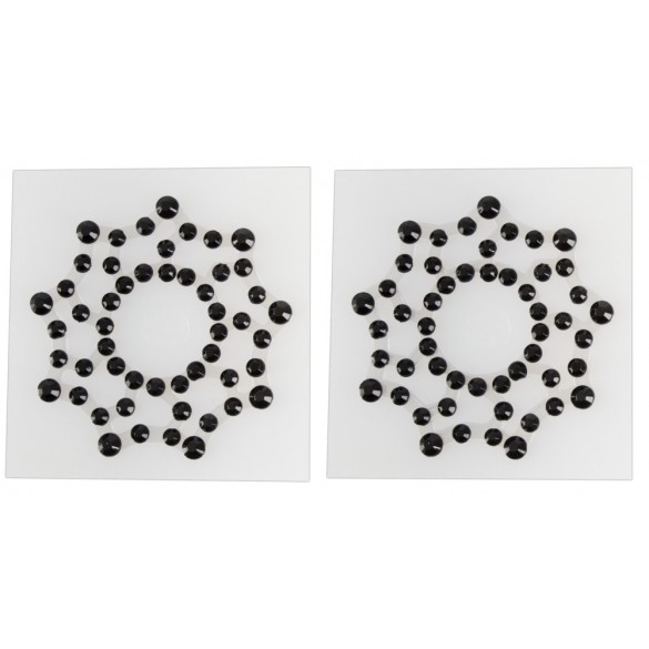 Il perfetto accessorio per gli spogliarelli privati, la sorpresa erotica sotto qualsiasi look e un “giocattolo” stuzzicante durante i momenti intimi! Con pietre strass nere. Ø 1,5 cm. Materiale: acrile. 1 paio.