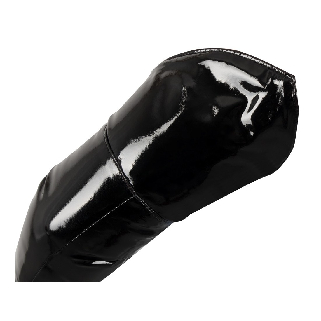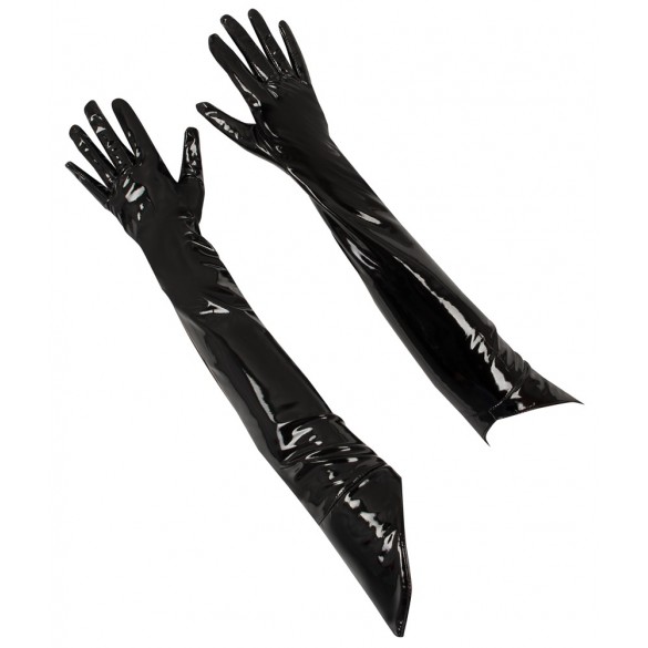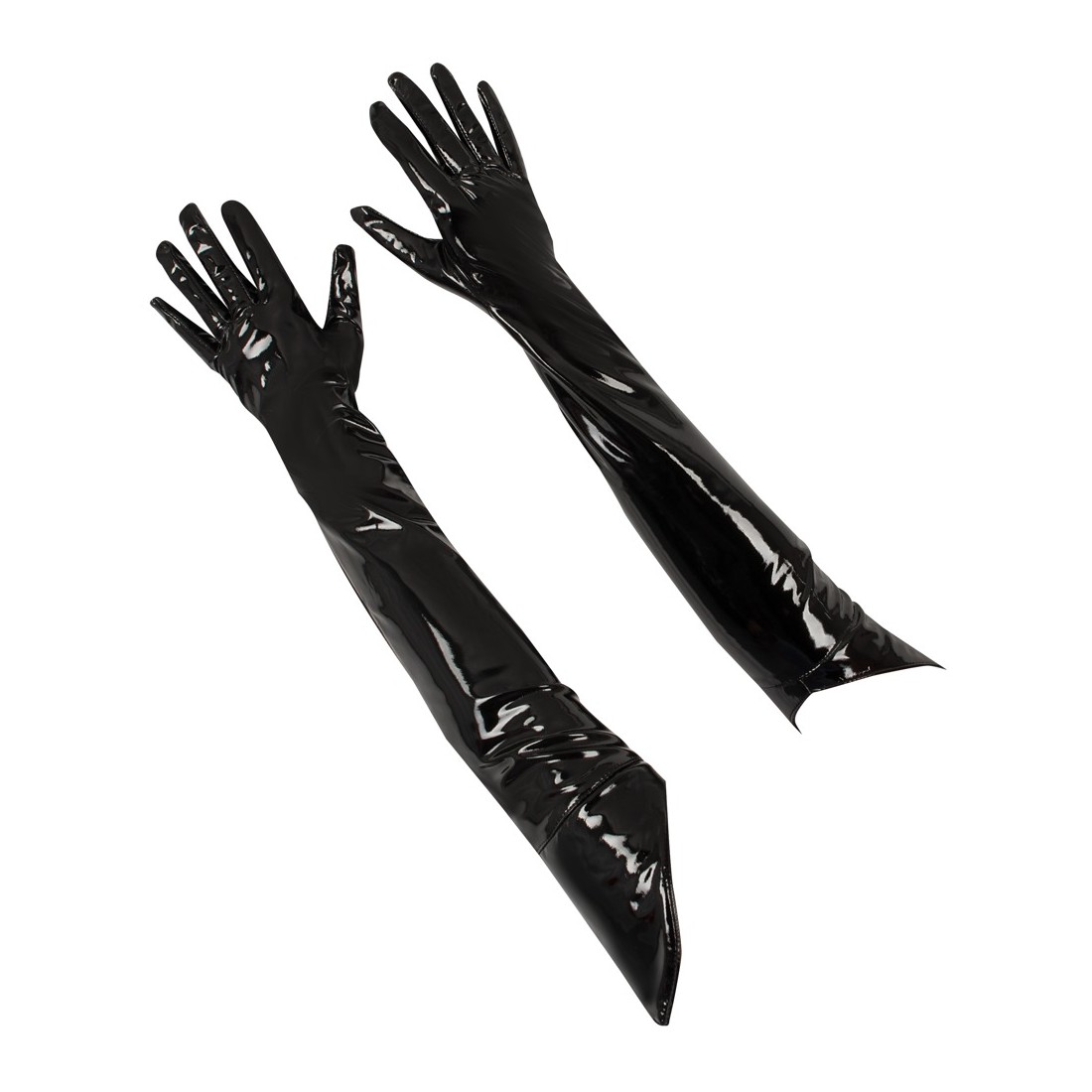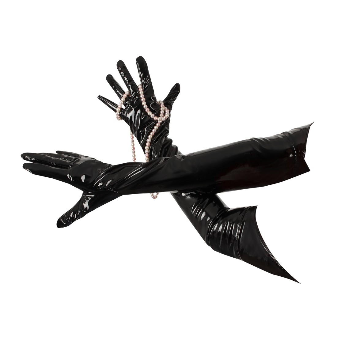 Guanti extra lunghi di Black Level completamente in vernice nera lucida. Arrivano quasi alle spalle e sono tagliati a punta sui polsini per una vestibilità comoda.