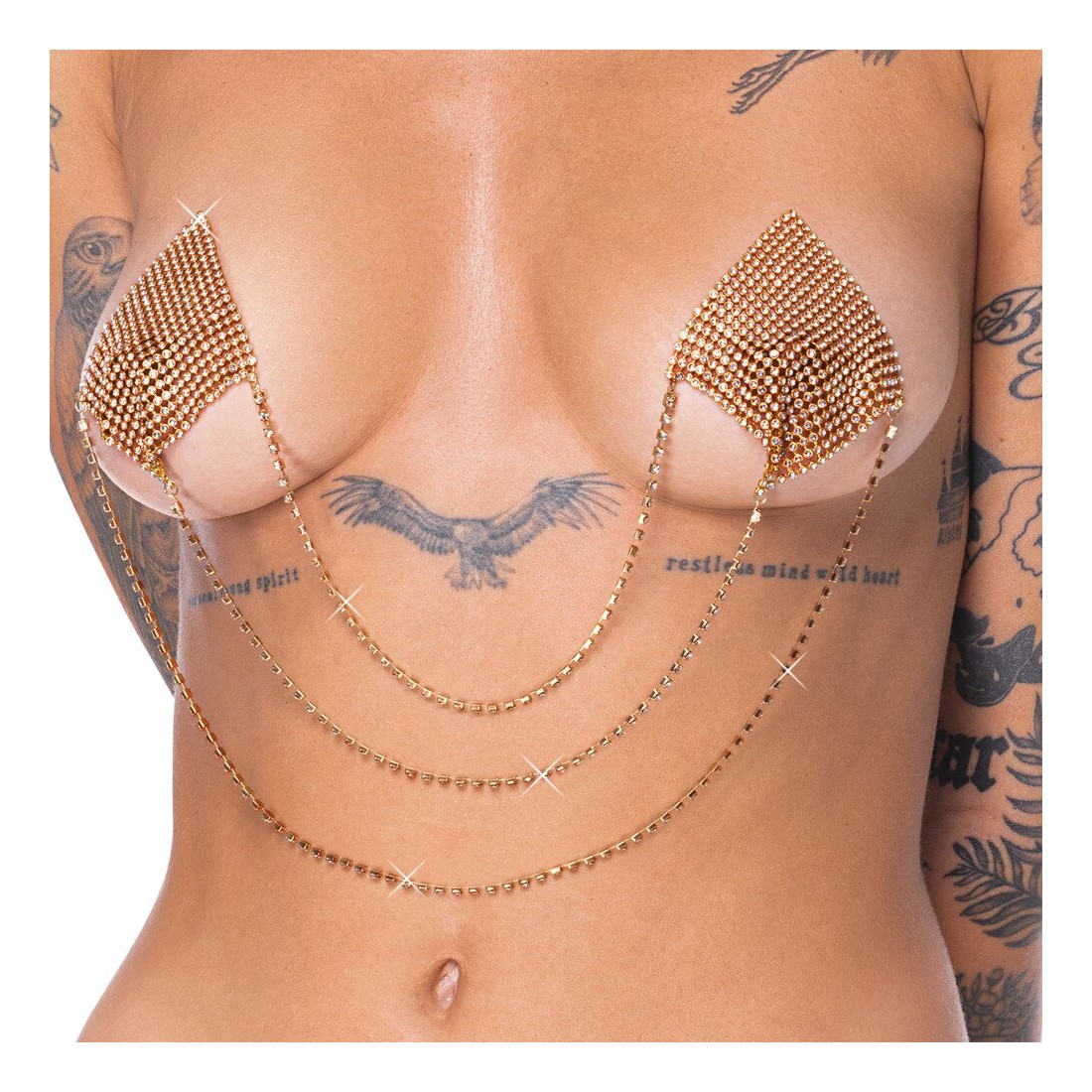 Adesivi per capezzoli diamantati con 3 catene di collegamento Color oro