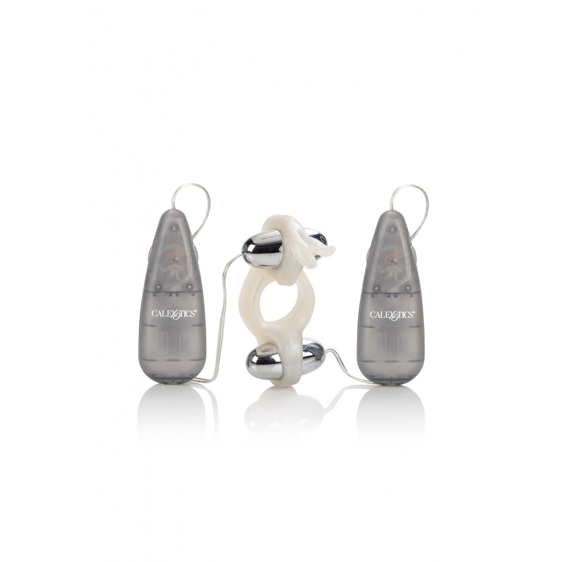 Il set comprende un anello fallico in PVC morbido ed elastico due proiettili vibranti multi-velocit con doppi comandi Gli alimentatori sono collegati tramite cavo a due controller portatili.misura un compatto 4 "x 1.75" / 10 cm x 4 cm.