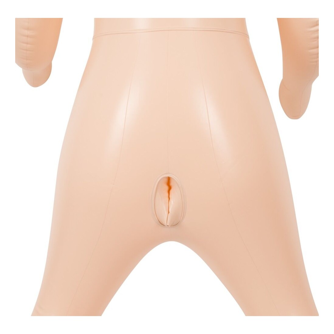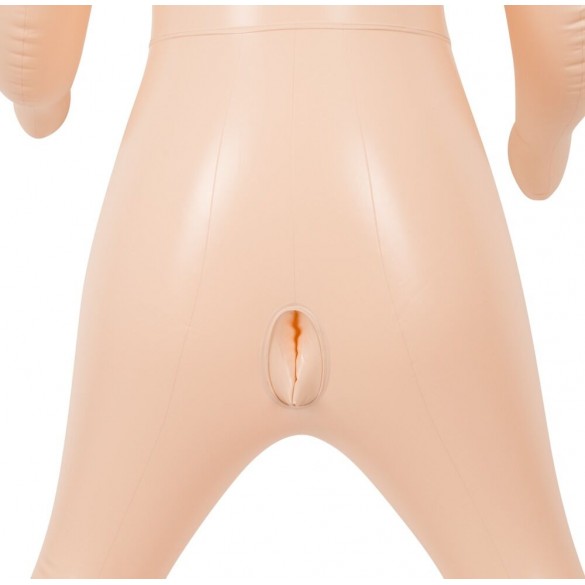 Bambola dell'amore in posizione missionaria con le braccia piegate. I suoi vantaggi sono la testa elaborata in 3D con capelli biondi e i grandi seni con capezzoli duri. 3 fori di piacere che possono essere fatti vibrare dal vibrobullet a più velocità incluso. Si prega di ordinare le batterie separatamente (2 x AA).