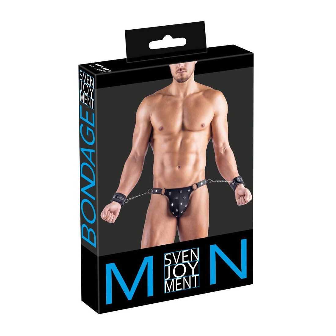 Perizoma Rio nero di Svenjoyment Bondage con manette morbide. In look opaco con accessori metallici color argento. Morbido ed elasticizzato per il massimo comfort. Rio con borchie decorative sul davanti. Cintura in vita sul davanti e sui lati con anelli ai quali è possibile agganciare rapidamente le manette incluse con le loro catene a moschettone. I polsini morbidi e opachi possono essere indossati e regolati rapidamente con chiusure in velcro.