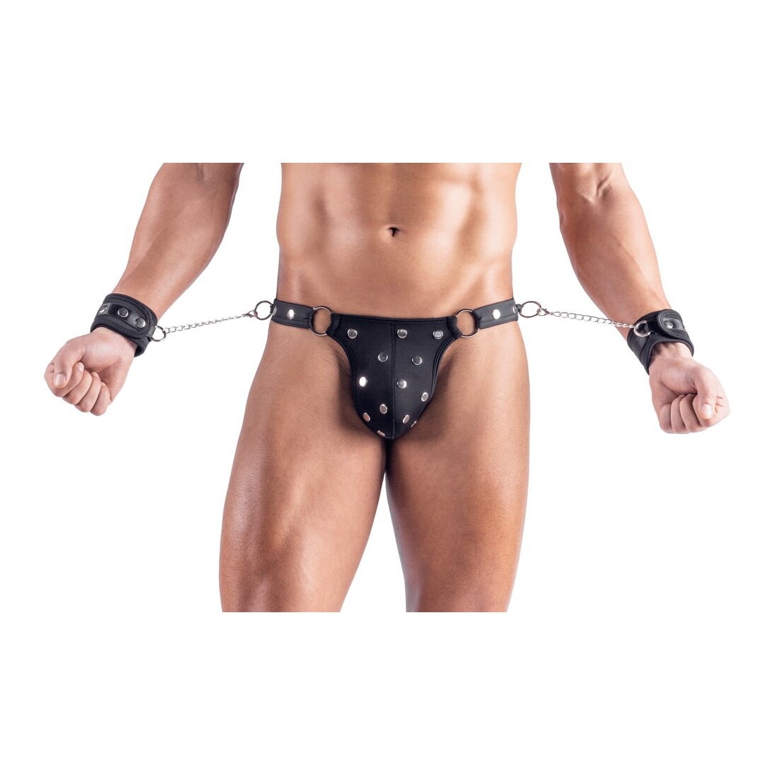 Perizoma borchiato nero opaco con manette morbide incluse M