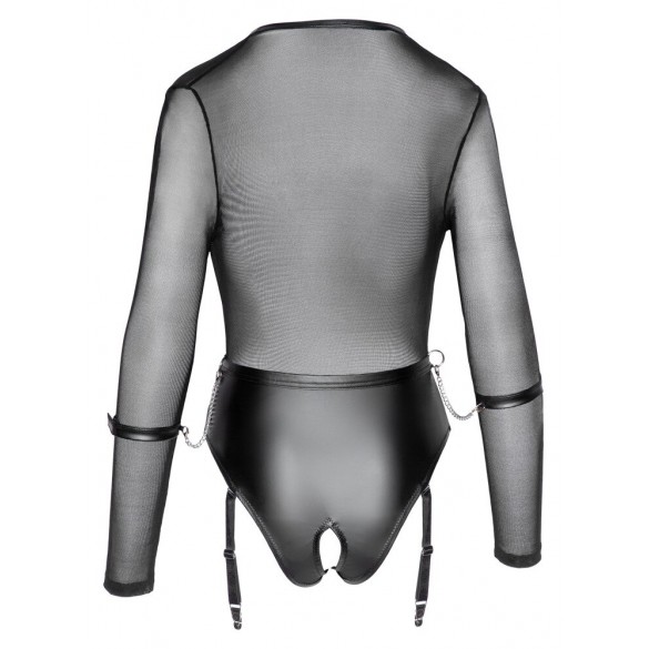 Body reggicalze extra scollato di con top trasparente a maniche lunghe M