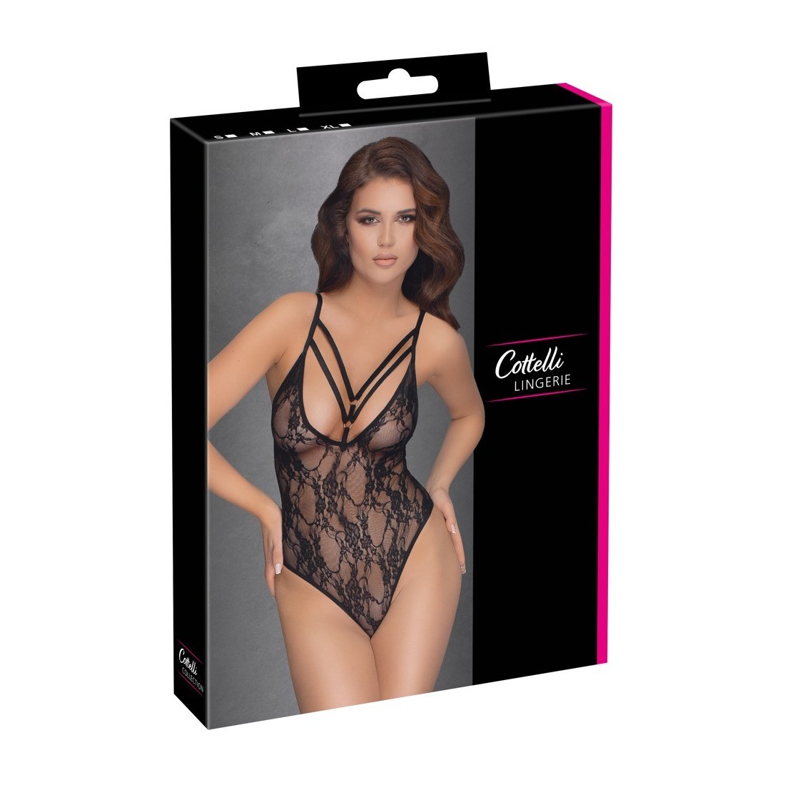 Sexy pezzo unico completamente in pizzo!Corpo in pizzo con una profonda scollatura molto seducente dove le bande elastiche si collegano con due anelli color oro. Le cinghie sono regolabili per una vestibilità perfetta.90% poliestere, 10% spandex.