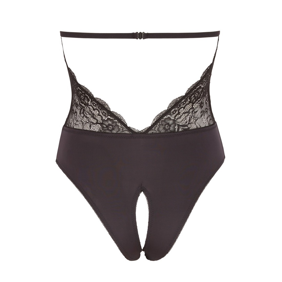 Questo body nero di Cottelli LINGERIE, con la pratica chiusura a clip sulla schiena, affascina con un top in pizzo fine e tenta con un cavallo aperto.