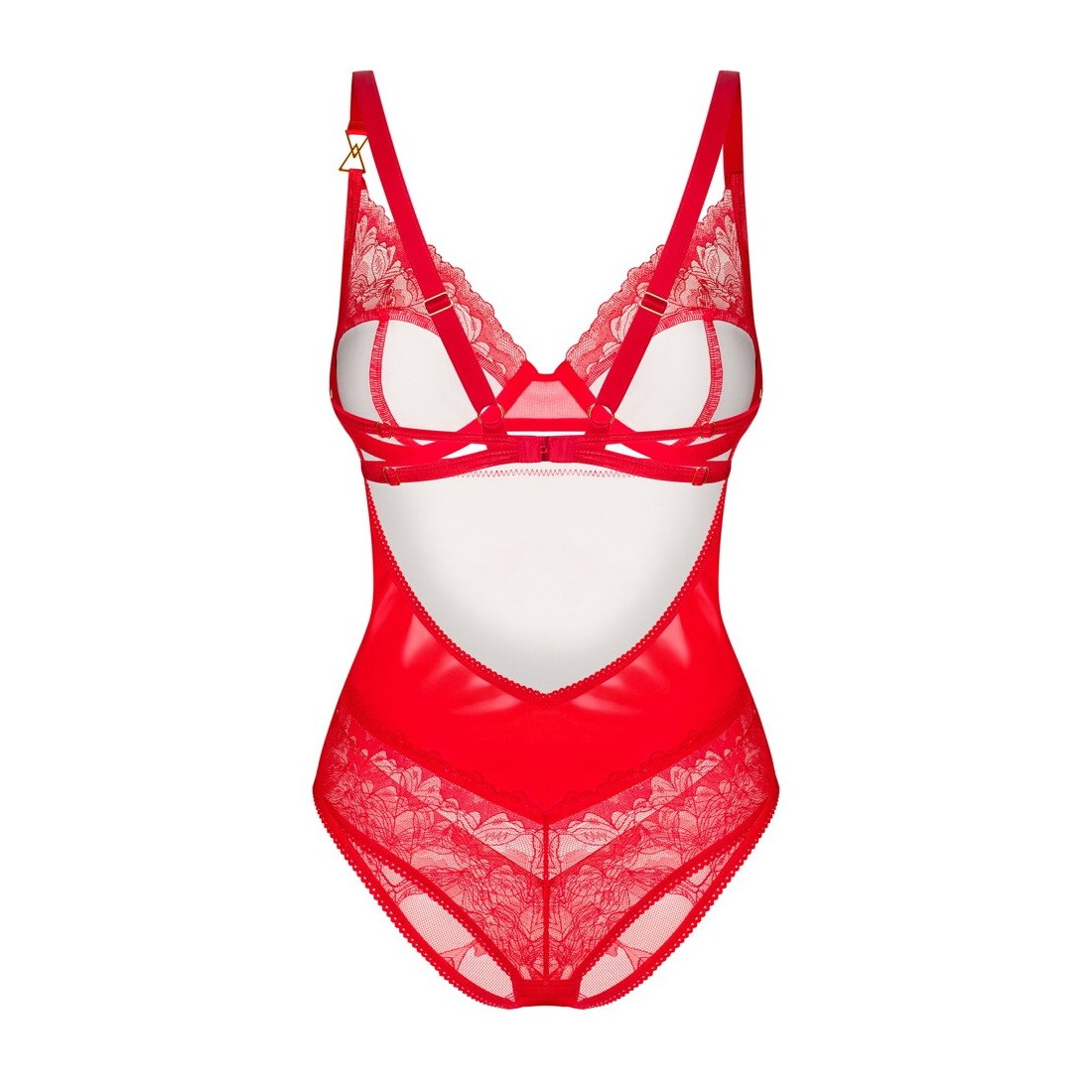 Body Aliosa di Obsessive dallo stile seducente. In un rosso sensuale con un'elegante lucentezza liscia e un fine pizzo floreale trasparente. Morbido ed elasticizzato su tutto il corpo per un elevato livello di comfort. Con sottili dettagli decorativi color oro tra le coppe con ferretto e su una spallina. La chiusura a gancio sul cavallo, le spalline e la chiusura a gancio sulla schiena sono regolabili.