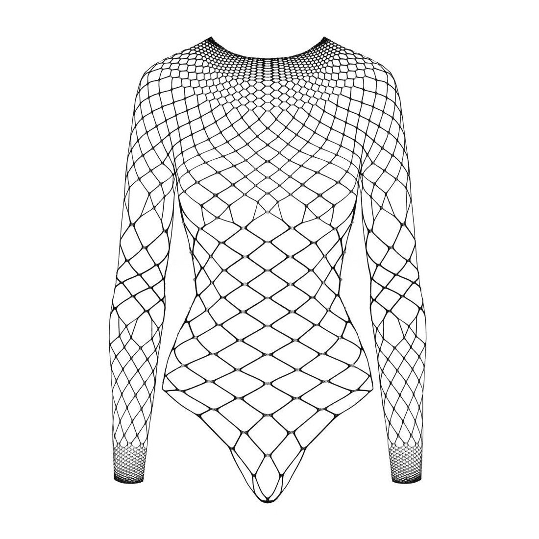 Body nero a maniche lunghe di Cottelli FANTASY con diverse strutture a rete rivelatrici. Con strass su tutto il centro. In stile Rio, con alti tagli sulle gambe che mettono perfettamente in mostra il sedere e le gambe. Meravigliosamente morbido e altamente elasticizzato per il massimo comfort.