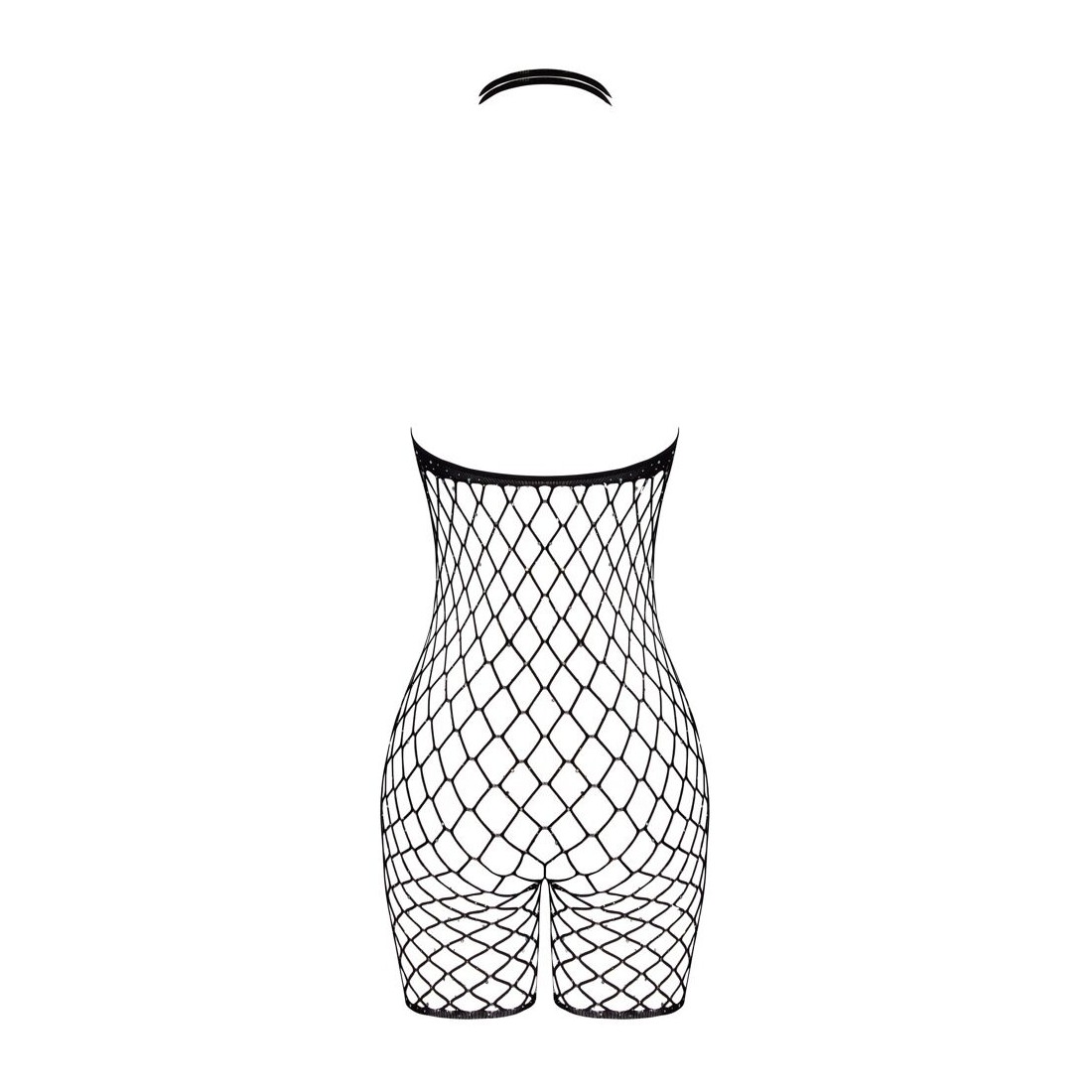 Body crotchless senza schienale di Cottelli FANTASY con gambe corte. Realizzato in morbida rete nera, con aspetto diverso sul davanti. Incrostato dappertutto con strass scintillanti. Realizzato senza cuciture ed elasticizzato per un elevato livello di comfort. Seducente apertura sul cavallo. Il doppio collo alto elasticizzato può essere indossato anche incrociato sulla scollatura.