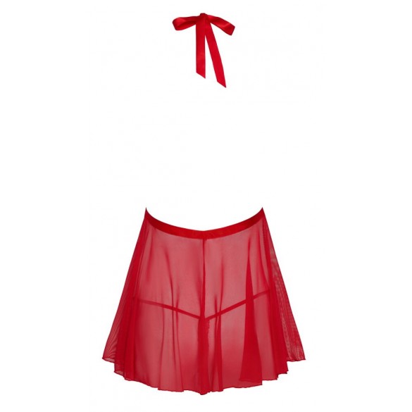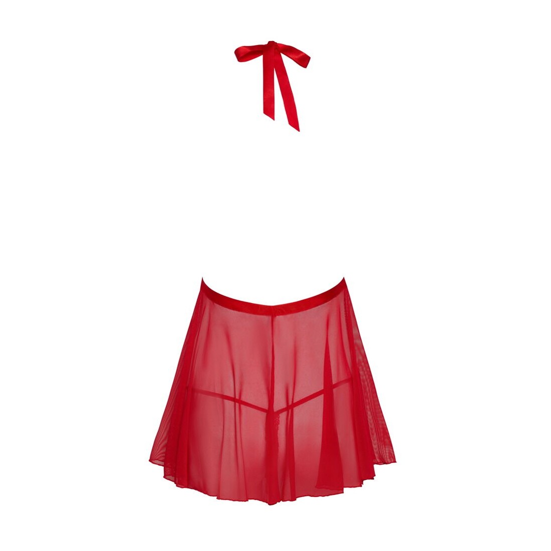 Babydoll corto e svasato di kissable in trasparenza rossa, realizzato in splendido pizzo floreale (top) e fine powernet (gonna). Morbido come la seta ed elastico per un elevato comfort. Sul davanti ha una scollatura generosa, dal collo a farfalla alla fascia in vita. La scollatura in nastro di raso si allaccia al collo, la fascia in vita in raso si allaccia sul davanti. Senza schienale. Il piccolo perizoma in pizzo è incluso.