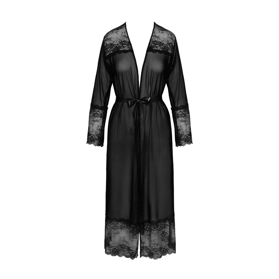 Kimono lungo di Kissable realizzato in pregiato powernet con eleganti inserti in pizzo sulle spalle, sulle maniche lunghe e sull'orlo. Morbido ed elastico su tutto il perimetro per il massimo comfort. Con cintura da annodare in raso.