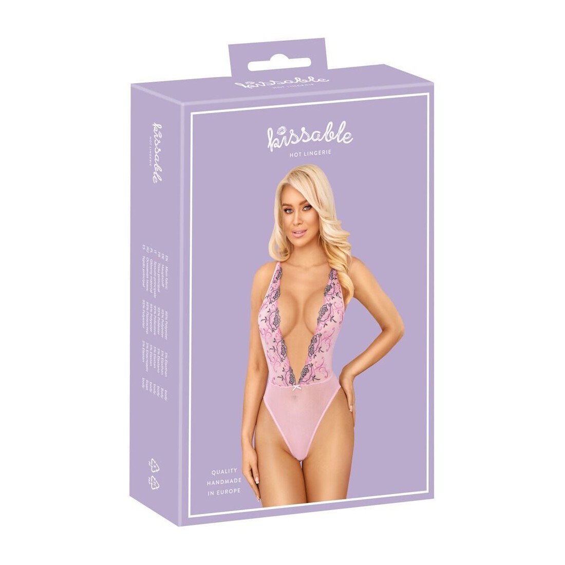 Body extra scollato di Kissable, realizzato in pregiato powernet rosé con intricati ricami floreali tono su tono. Morbido ed elastico su tutta la superficie per il massimo comfort. Le spalline regolabili si incrociano sulla schiena.