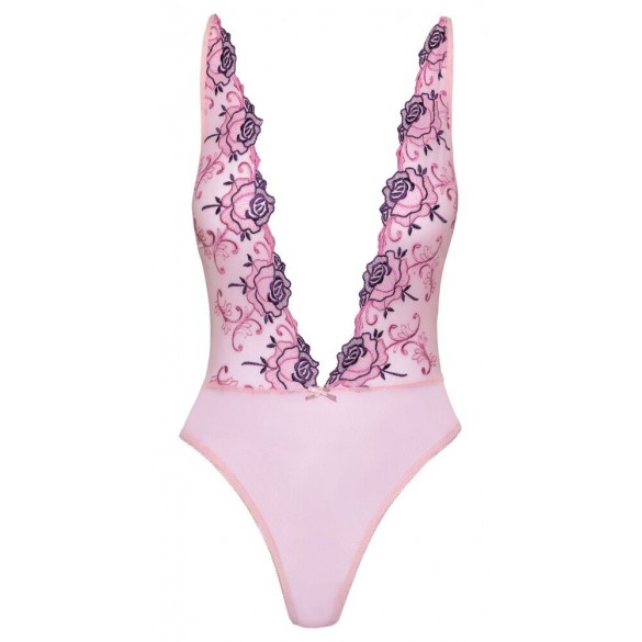 Body extra scollato rosé con ricami floreali S/M
