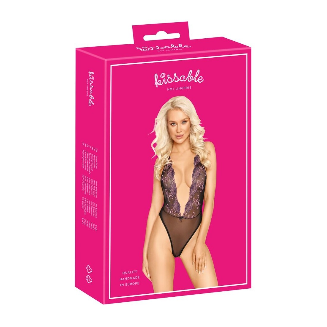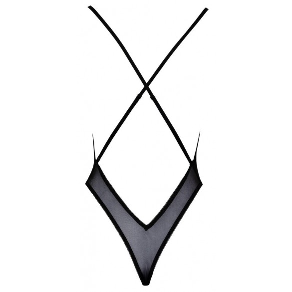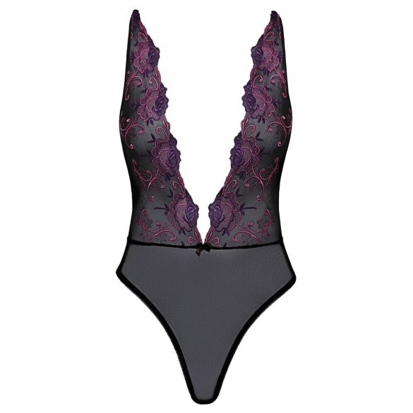 Body extra scollato nero con ricami floreali in rosé e viola S/M