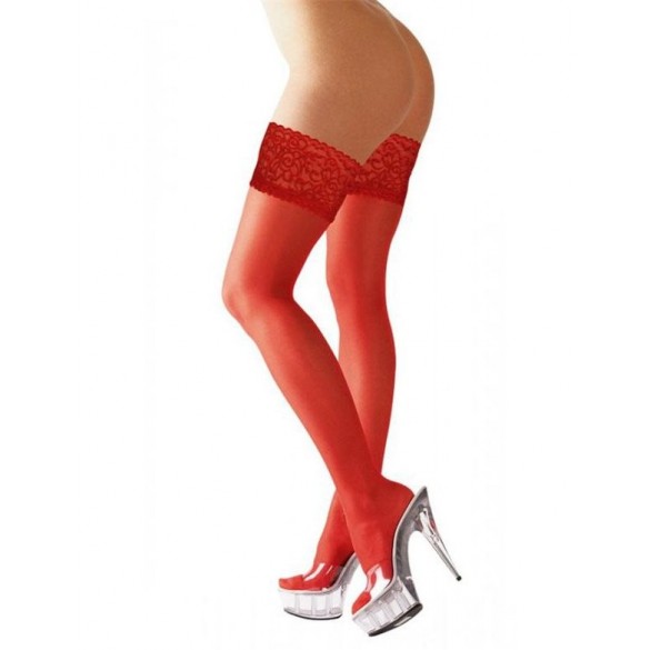 Sexy lingerie femminile della linea Cottelli. Calze autoreggenti di qualit. Tessuto velato a scelta tra tre colori : bianco rosso o nero. Balza di sostegno con silicone per una buona tenuta. Materiale: 90% Poliammide 10% Spandex Varie taglie: M Vari colori: Rosso.