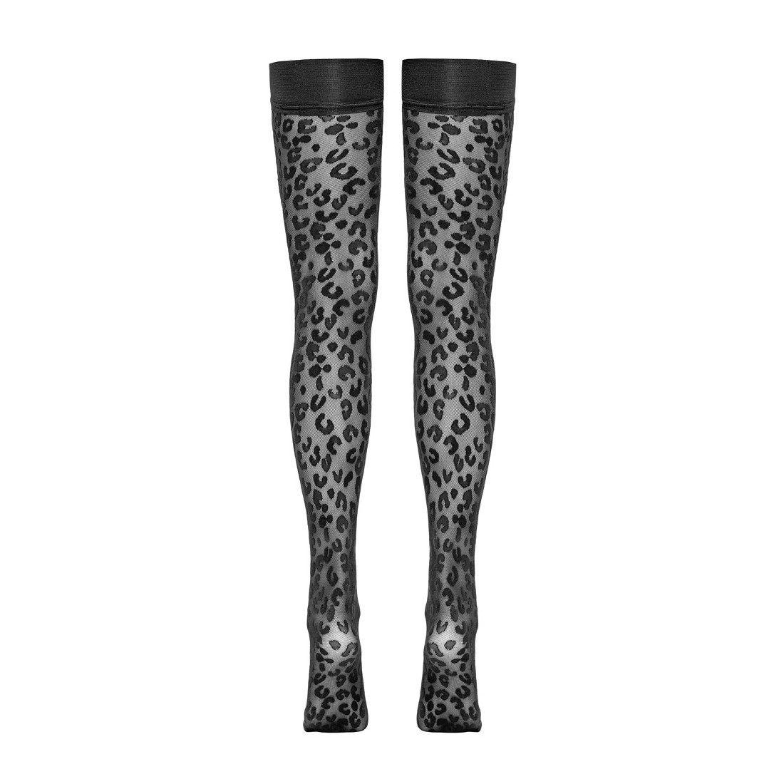 Calze autoreggenti (30 den) di Cottelli LEGWARE in look leo trendy (intrecciato). Grazie al rinforzo in silicone nella banda elastica, le calze sono ben salde e antiscivolo.