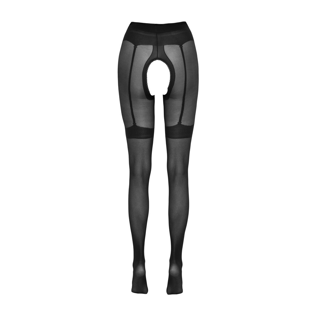 Collant di Cottelli LEGWARE in maglia fine (30 den) con reggicalze e bretelle intrecciate. Aperto al cavallo e sopra il sedere - perfetto per il sesso spontaneo!