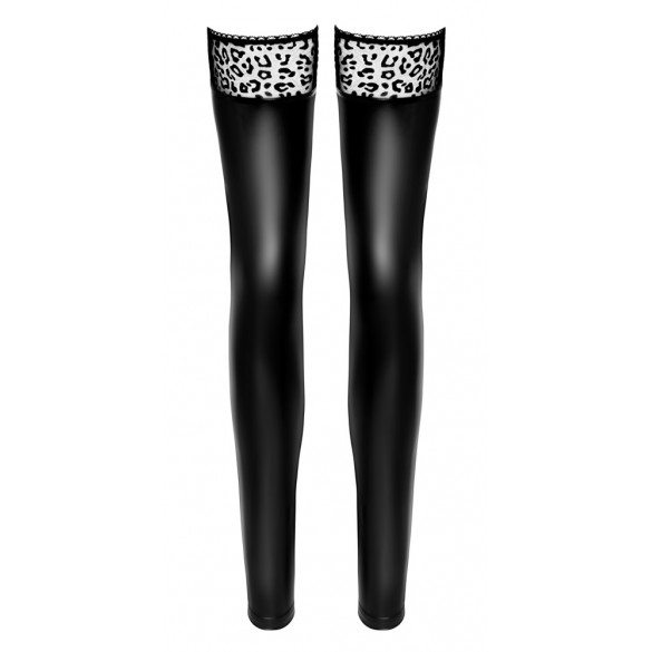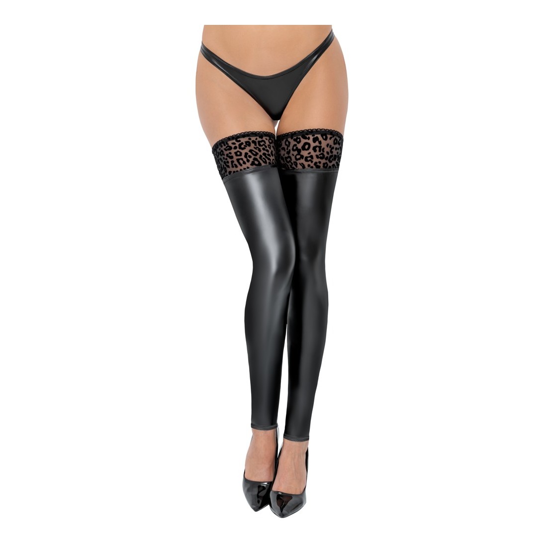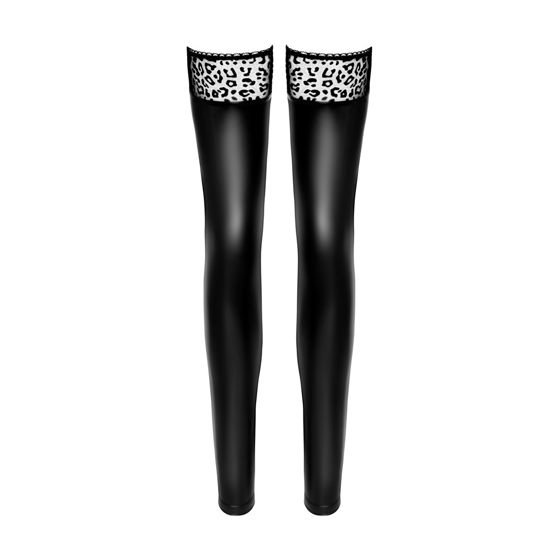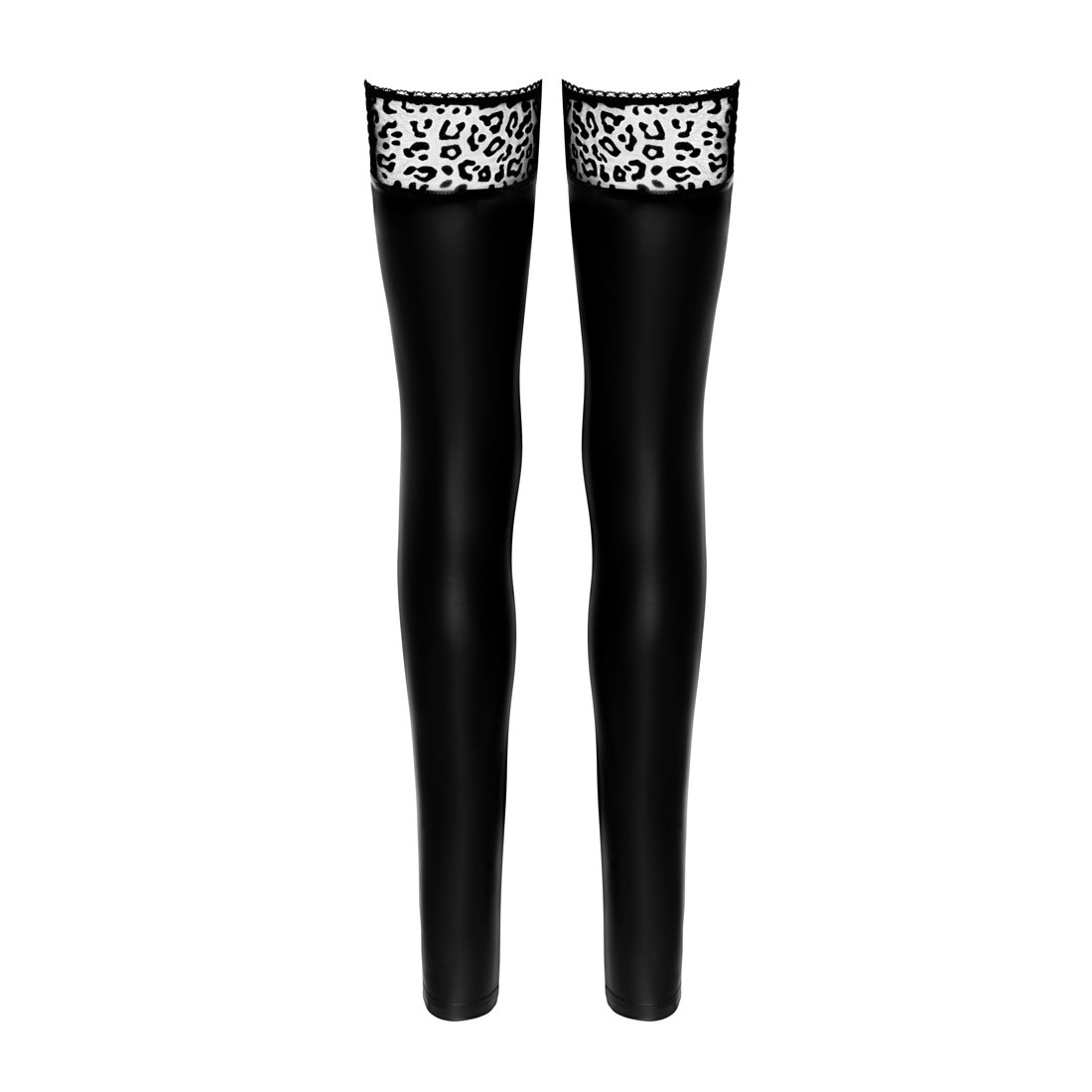 Overknees (scaldamuscoli) senza piede di Noir in un nobile wetlook opaco e lucido. Polsini antiscivolo in delicata trasparenza con stampa flock in velluto leo. Morbido ed elastico su tutto il perimetro per un elevato comfort di utilizzo.