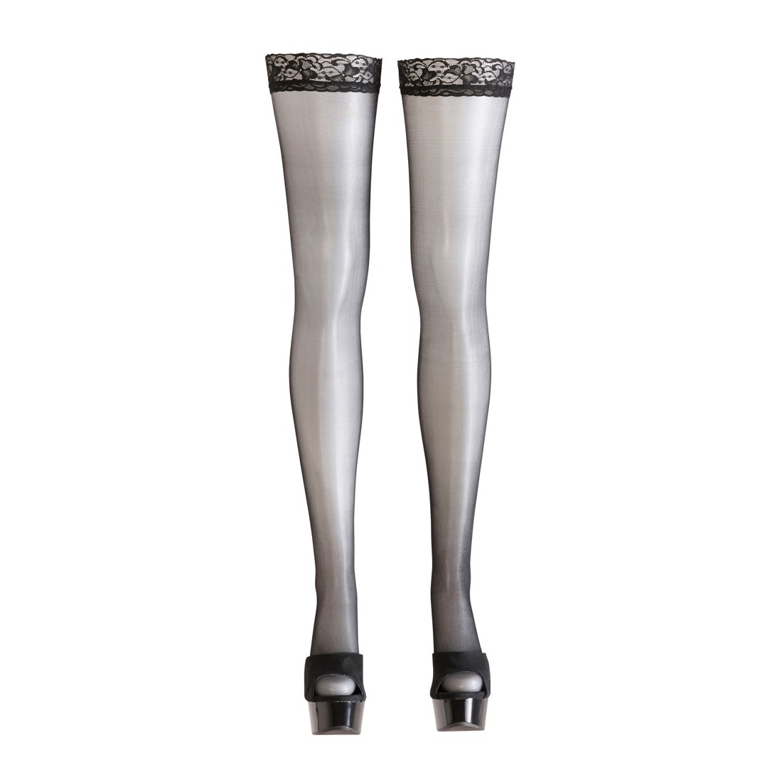 Calze autoreggenti con cucitura decorativa e tacco cubano sul retro. Le bellissime parti superiori in pizzo aggiungono la finitura perfetta a questo look sexy. Con fodera in silicone per una vestibilità antiscivolo. 20 denari.