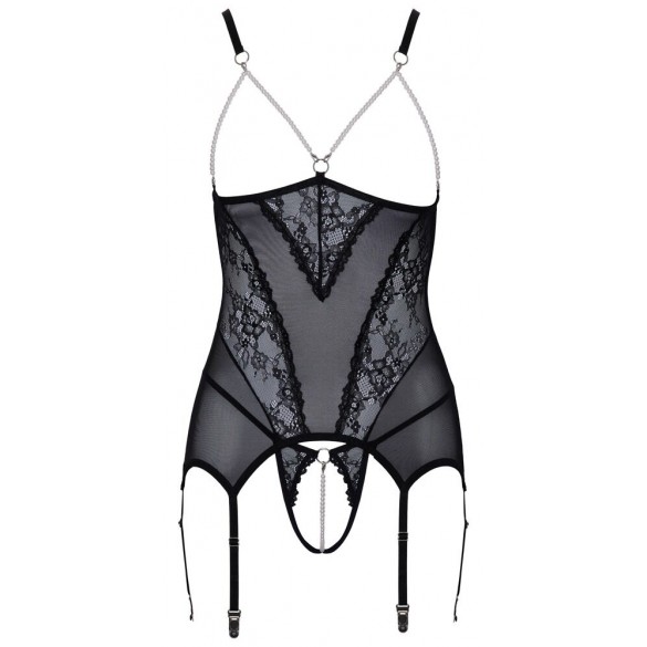 Chemise con reggicalze e perizoma nero senza cavallo L
