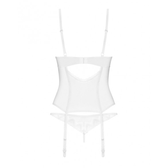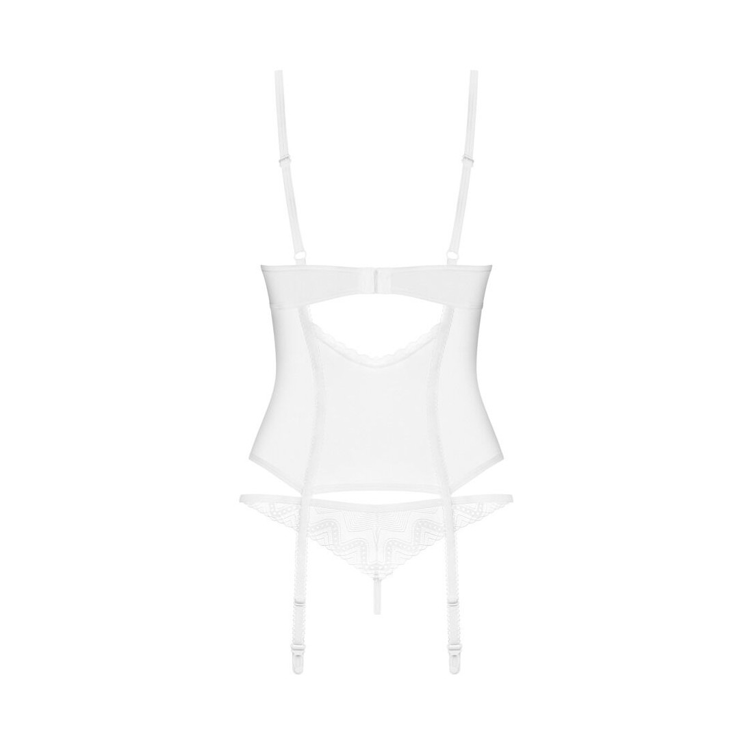 Set di lingerie trasparente Alissium di Obsessive con reggicalze e perizoma. Delicato tulle con pizzo strutturato e in un colore affascinante: l'intramontabile bianco. Morbido ed elasticizzato su tutto il corpo per un elevato livello di comfort. Tra le coppe morbido pizzo con sottile dettaglio gioiello. Le spalline e la chiusura a gancio sul retro sono regolabili, così come il reggicalze. Il perizoma aderente in pizzo completa il look sensuale e seducente.
