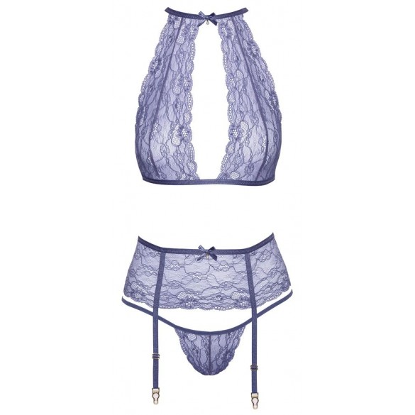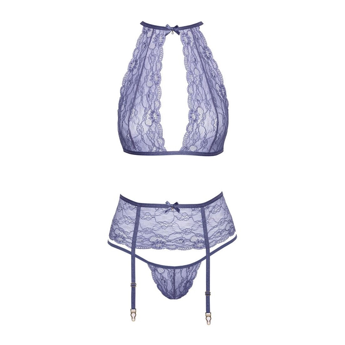 Morbido reggiseno, reggicalze e perizoma in pizzo pregiato da baciare completamente. Morbido ed elastico su tutto il perimetro per il massimo comfort. Reggiseno elegante con chiusura a gancetto sul collo e sulla schiena. Cintura per bretelle con chiusura a gancio sul retro, le bretelle sono regolabili per adattarsi. Il piccolo perizoma seduce con le sue due strette fasce elastiche che si uniscono all'inguine.