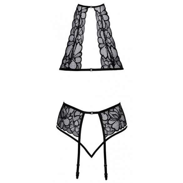 Morbido reggiseno, reggicalze e perizoma completamente realizzato in pregiato pizzo floreale L/XL