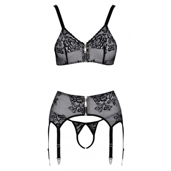 Reggiseno morbido, reggicalze e perizoma inguinale in un unico set