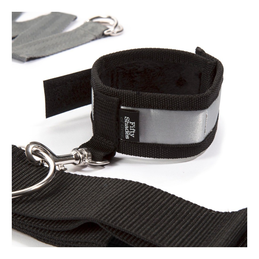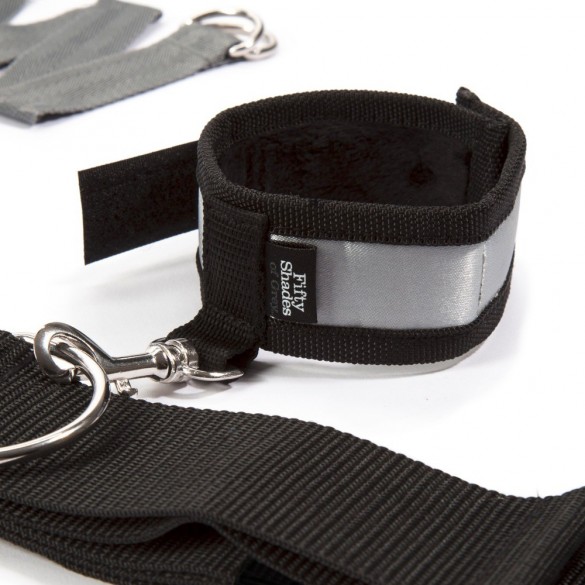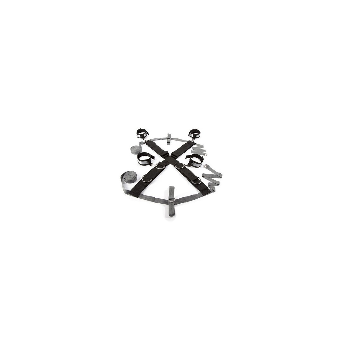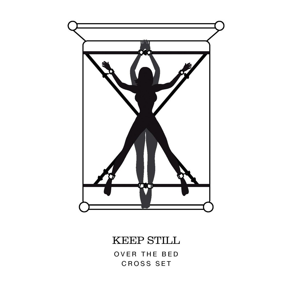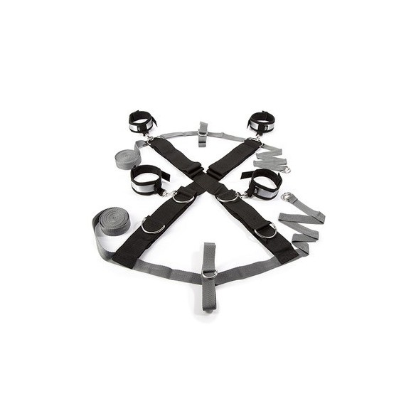 Tacere Attraversare catene letto (mano e caviglia polsini) adatto per tutte le dimensioni del letto. Varie possibilit di bondage disponibili attraverso gli occhielli e moschettoni. Nero/argento. Materiale: Poliestere polipropilene metallo. Include occhio maschera e porta segno.