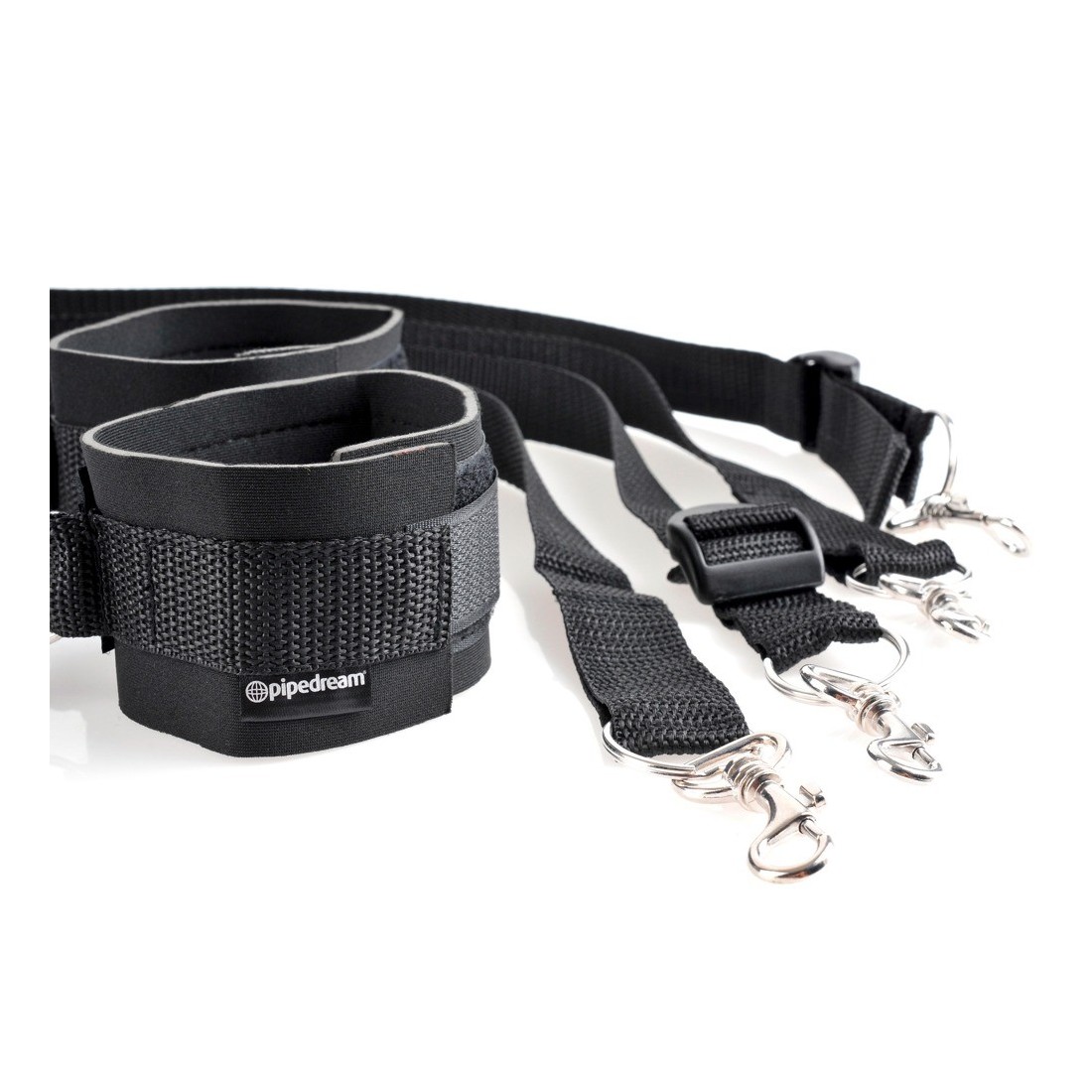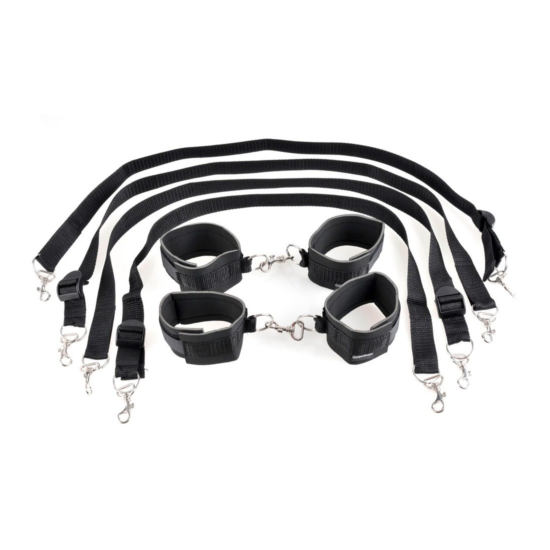 Set di polsini e cordini. Le cinghie regolabili possono essere legate a qualsiasi cosa permettendoti di lasciare che la tua immaginazione stabilisca i tuoi limiti.fantasie fetish pi profonde! Include: 4 polsini fantasia regolabili 4 lacci regolabili maschera d'amore in raso gratuita.