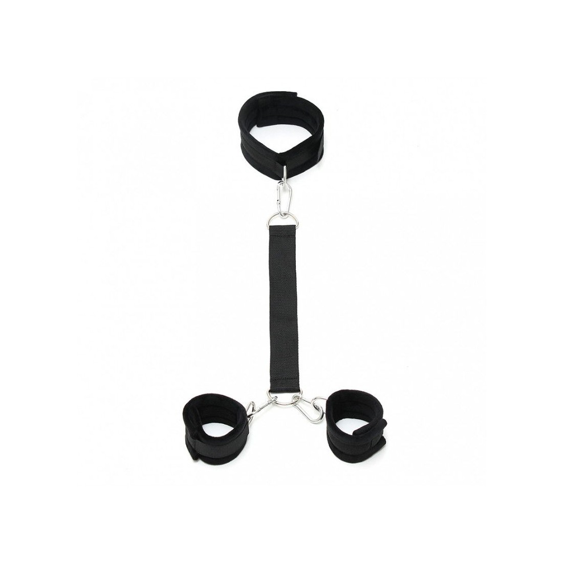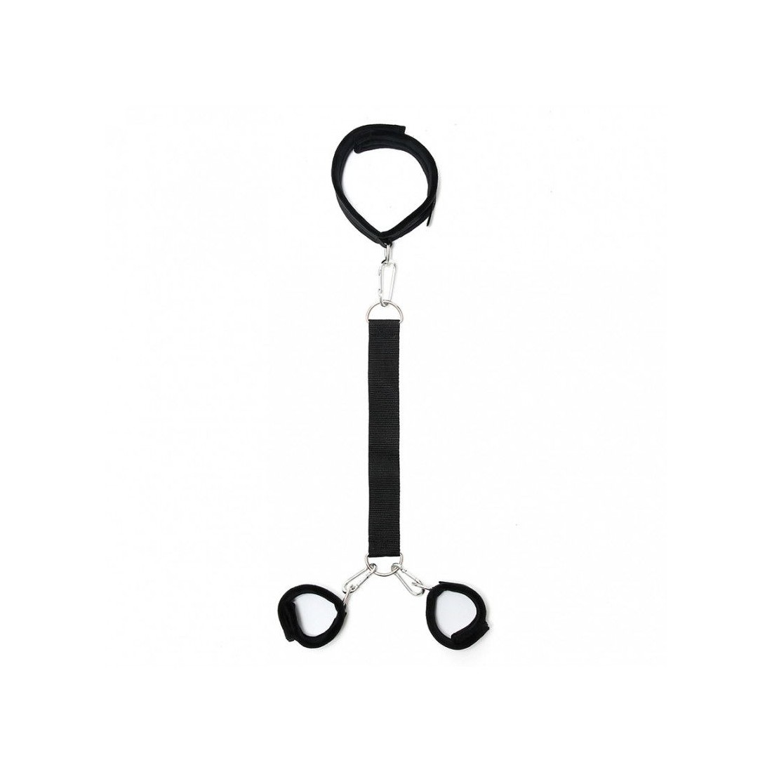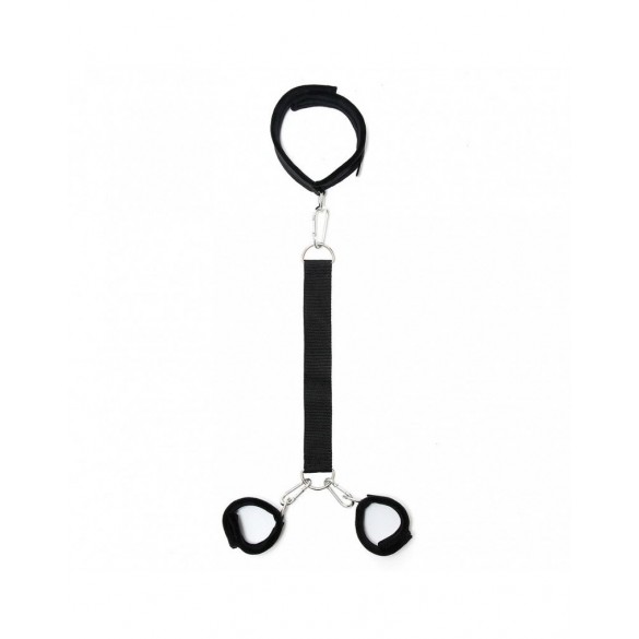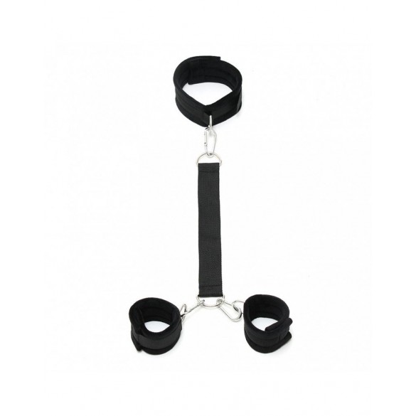 Collare morbido regolabile con cinturino staccabile e manette morbide con chiusura in velcro. Sono inclusi 3 moschettoni.