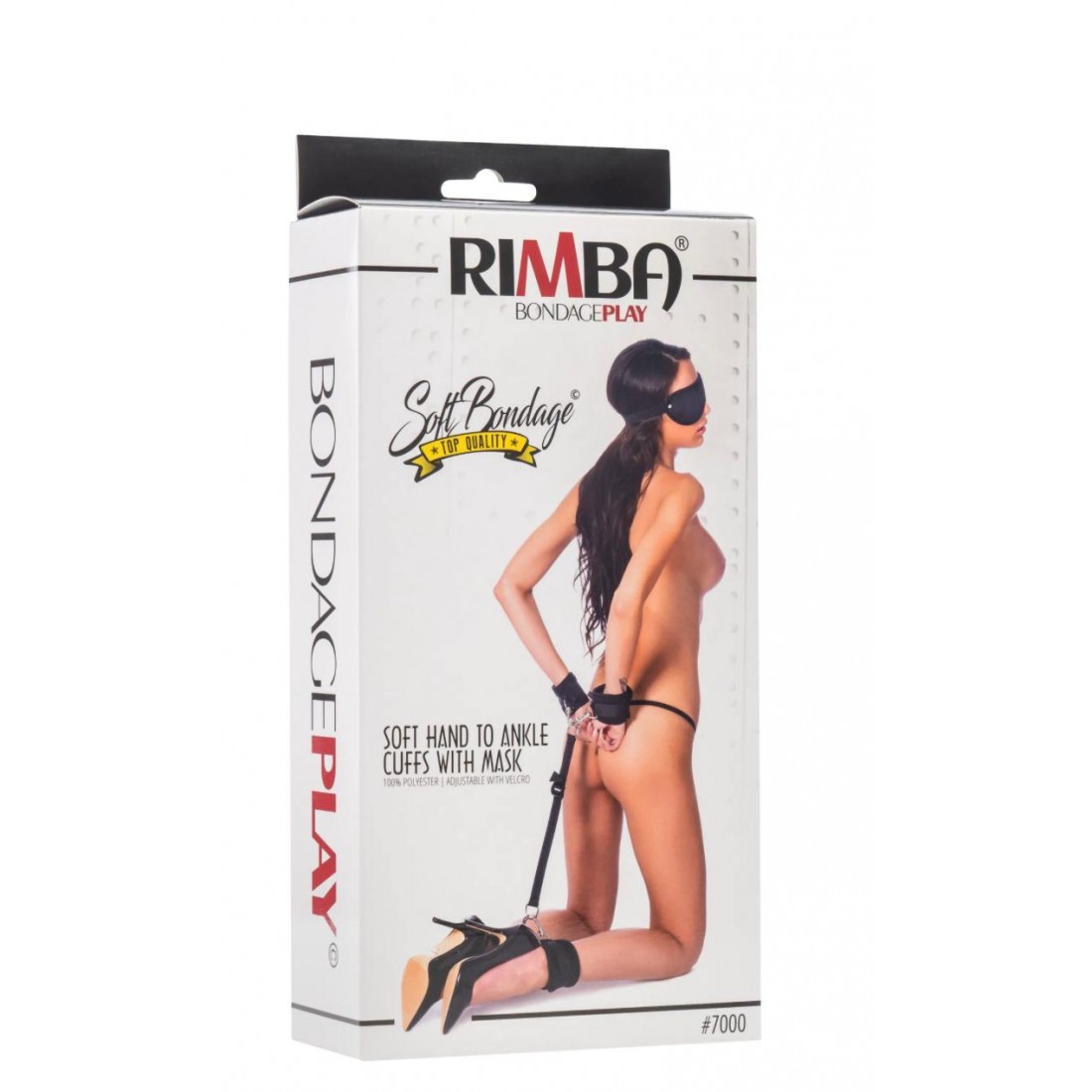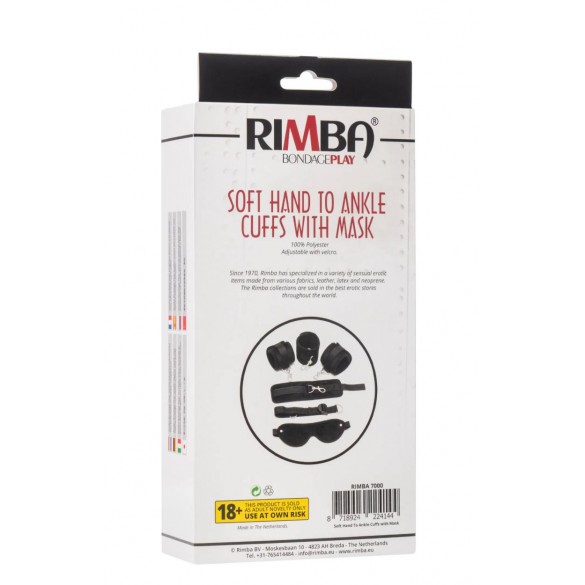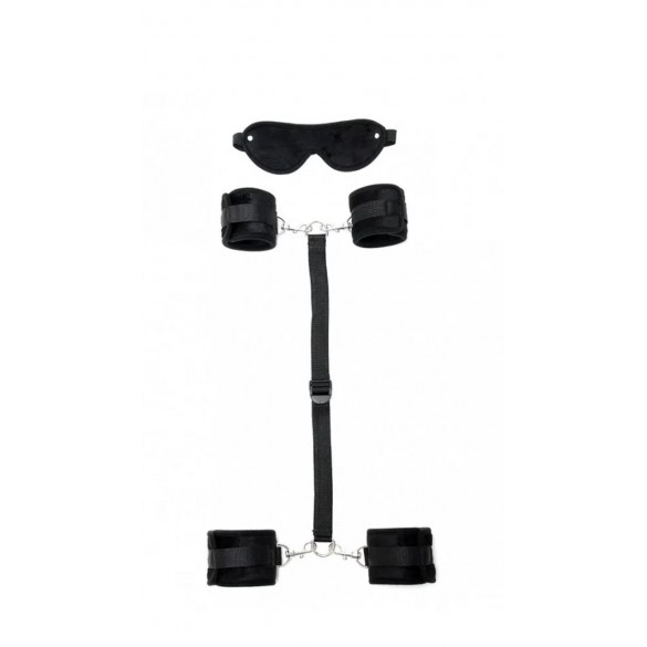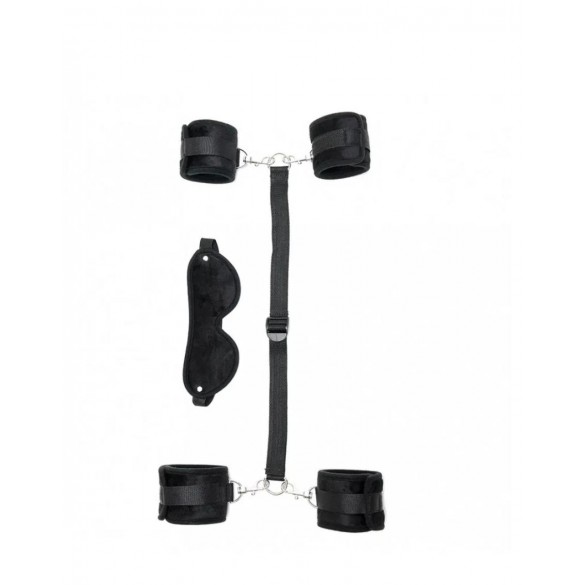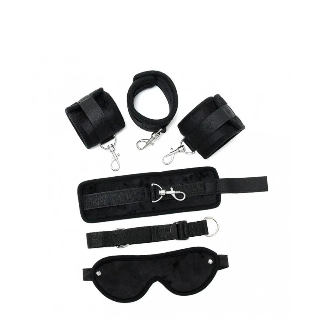 Set di manette morbide per bondage che include: benda + manette + manette per i piedi + cinturino regolabile