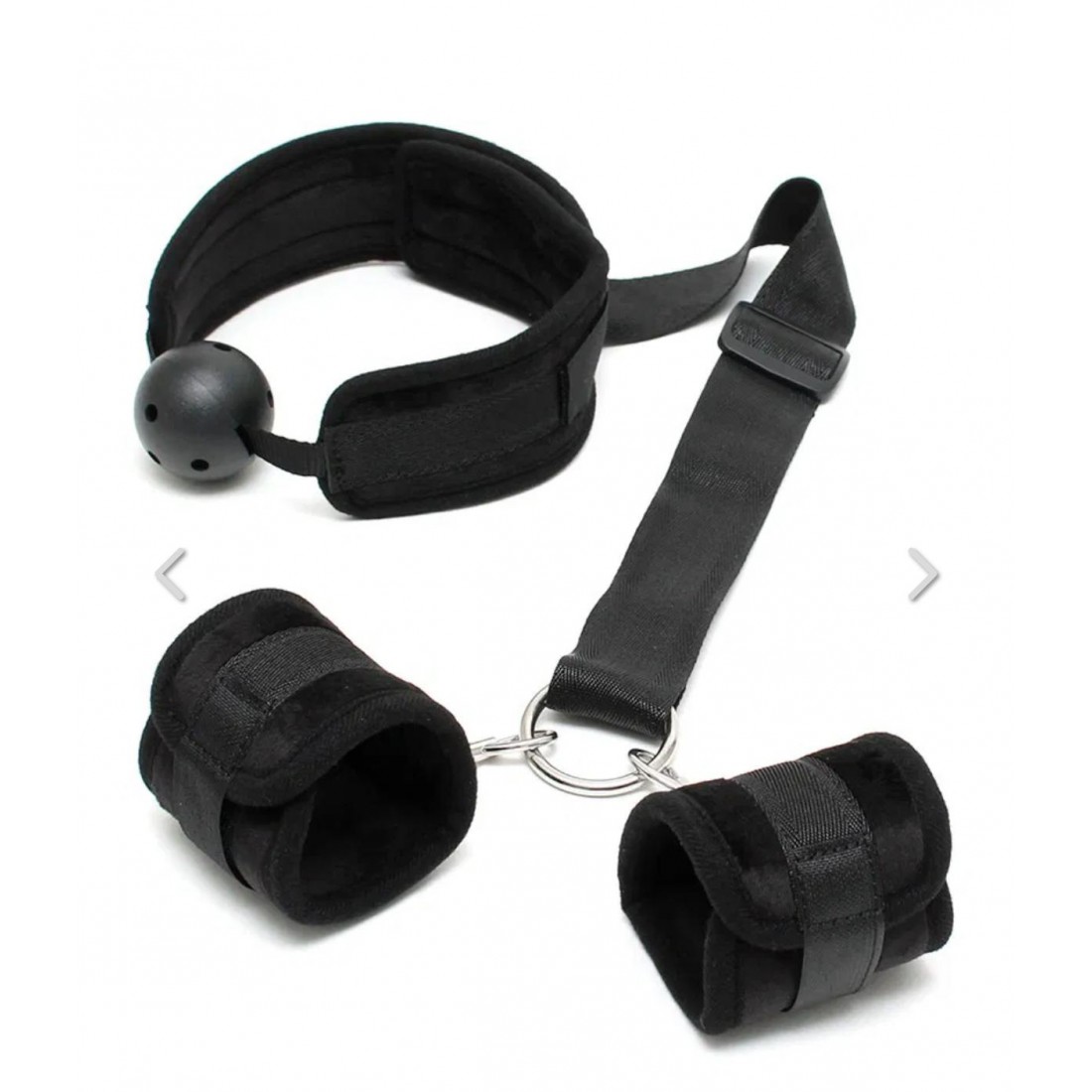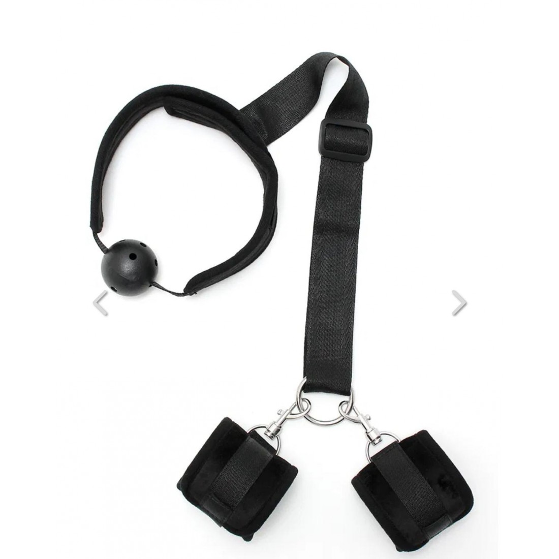 Rimba Bondage Play bavaglio morbido in velcro (palla Ø 45 mm) con cinturino regolabile per polsini morbidi in velcro staccabili