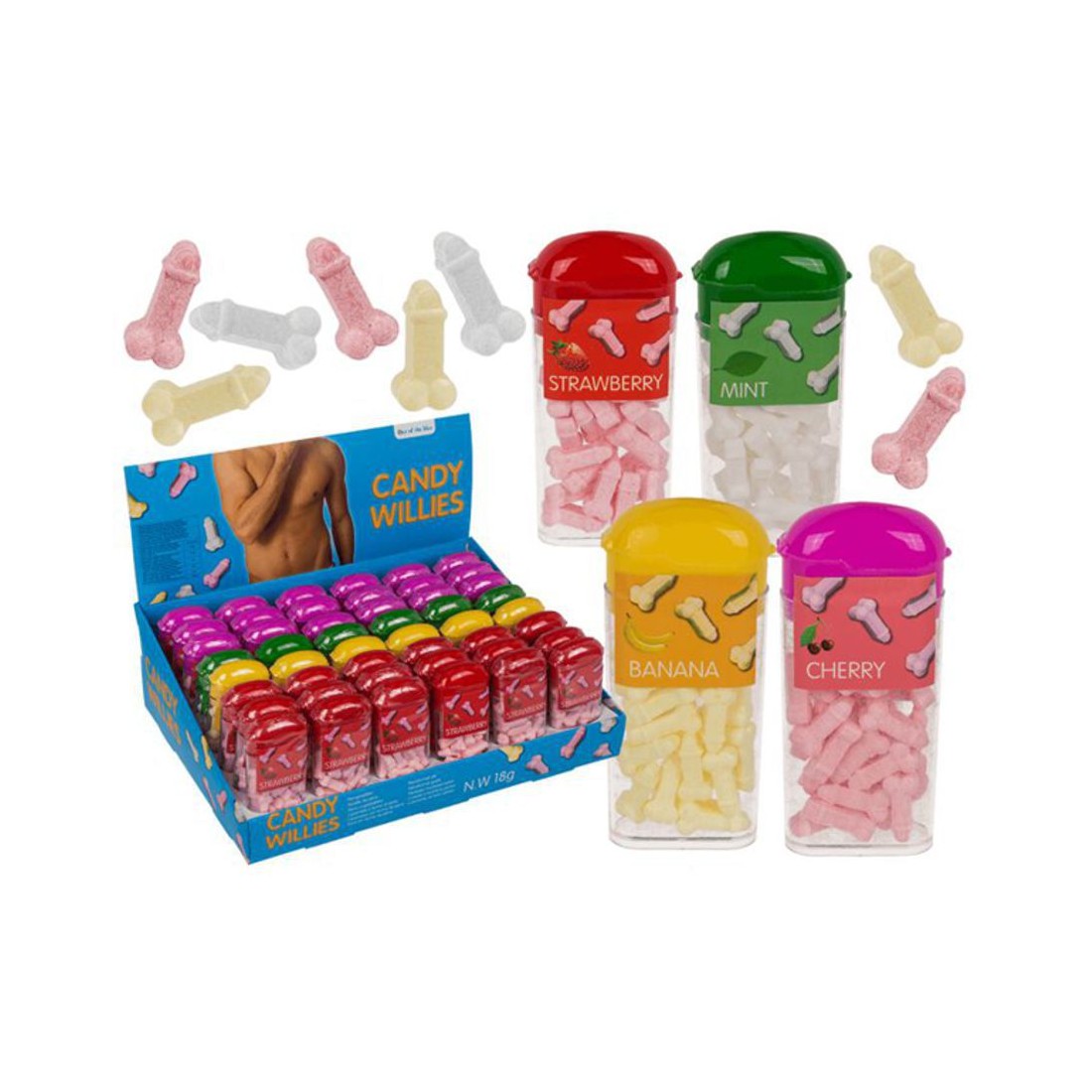 Caramelline pastiglie mentine colorate a forma di pisello fragola ciliegia menta banana in confezione da 18g x 4