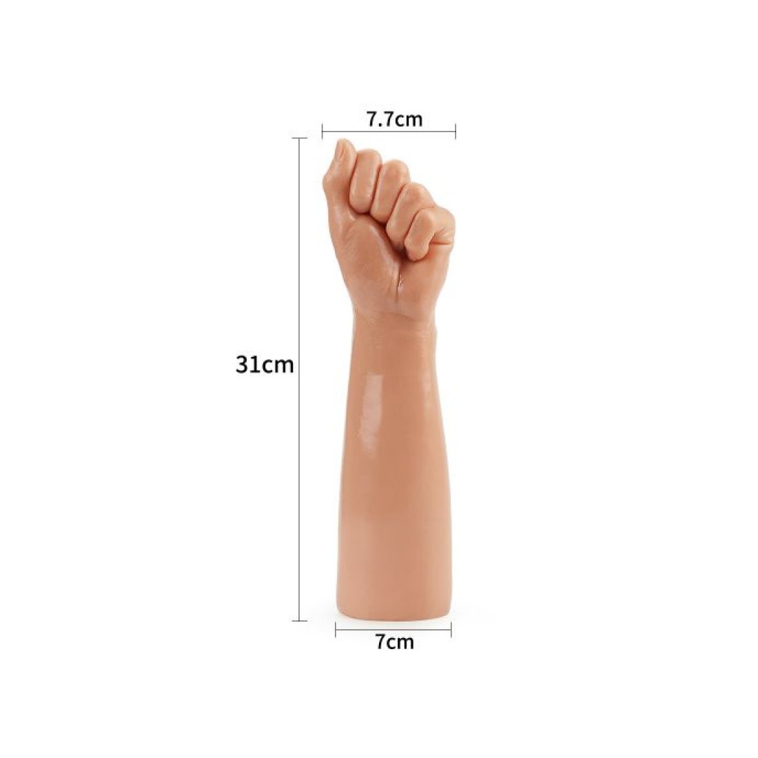 Il Bitch Fist è la riproduzione realistica di un pugno e di parte dell’avambraccio dalle dimensioni importanti: è lungo 31 cm e perfetto per gli amanti delle sensazioni estreme e per la pratica del fisting. Ha un design ricercato e curato nei dettagli per una sensazione realistica. Dal materiale liscio e morbido, il toy presenta le nocche del pugno accentuate per una penetrazione vaginale o anale davvero eccitante ed intensa. Realizzata in pvc di qualità, è senza ftalati ed ha un rivestimento waterproof per un facile uso anche in acqua.