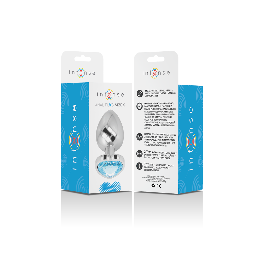 Fai brillare i tuoi glutei con il plug anale di Intense, decorato con un gioiello di diamanti. Questo plug in metallo di alta qualità con dettagli blu lucidi aggiunge glamour alle tue avventure anali.