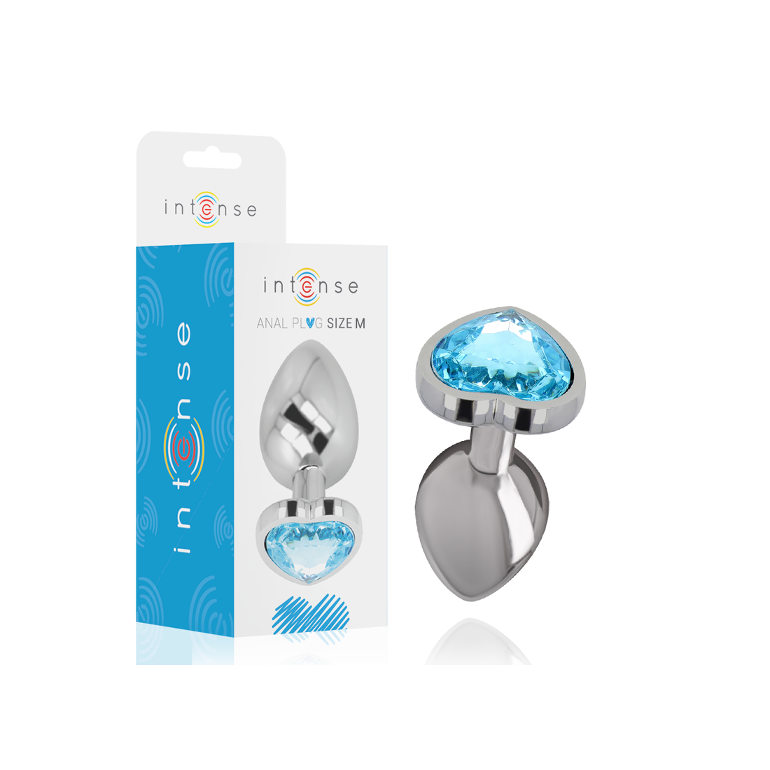 Fai brillare i tuoi glutei con il plug anale Intense?, decorato con un gioiello di diamanti. Questo plug in metallo di alta qualità con dettagli blu lucidi aggiunge glamour alle tue avventure anali.