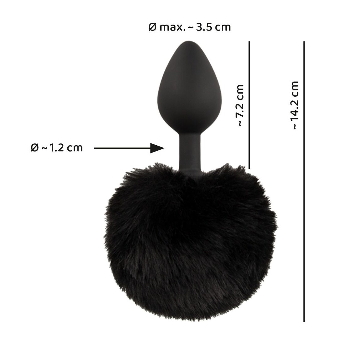 Lunghezza di inserimento del plug 7,2 cm, Ø massimo 3,5 cm, Ø conico 1,2 cm.