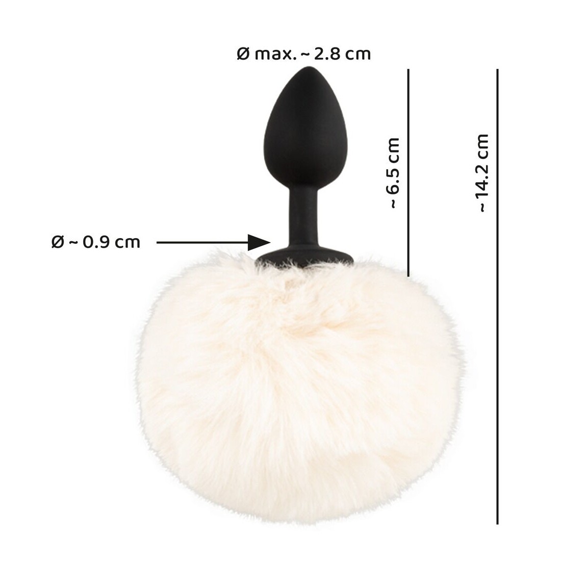 plug a coda per il sedere taglia S di You2Toys con un soffice sbuffo di morbida pelliccia sintetica bianca sull'ampio tappo a prova di anale. Plug anale nero dal design conico con una punta stretta e sensibile. Piacevolmente flessibile e realizzato interamente in silicone per un facile inserimento, una regolazione ottimale e un elevato comfort di utilizzo per animali domestici e cosplay.